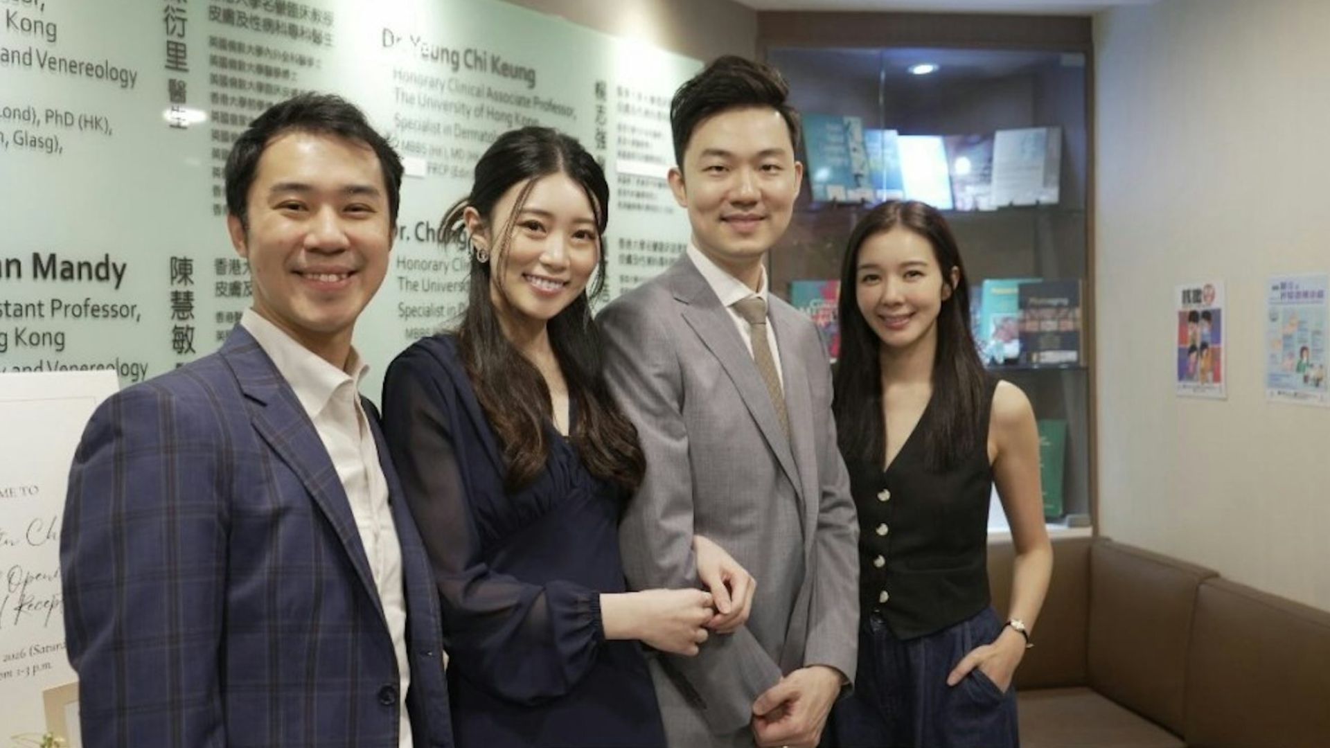 馮盈盈舊愛鍾文浩(Martin)雖然並非圈中人,不過近年不時以醫學專家身份亮相電視節目,鍾文浩近日進軍中環開設皮膚專科診所,馮盈盈閨密麥明詩毫不避嫌,與醫生哥哥麥明山現身到賀,大方與鍾文浩夫婦合照,新診所開張當日場面熱鬧。