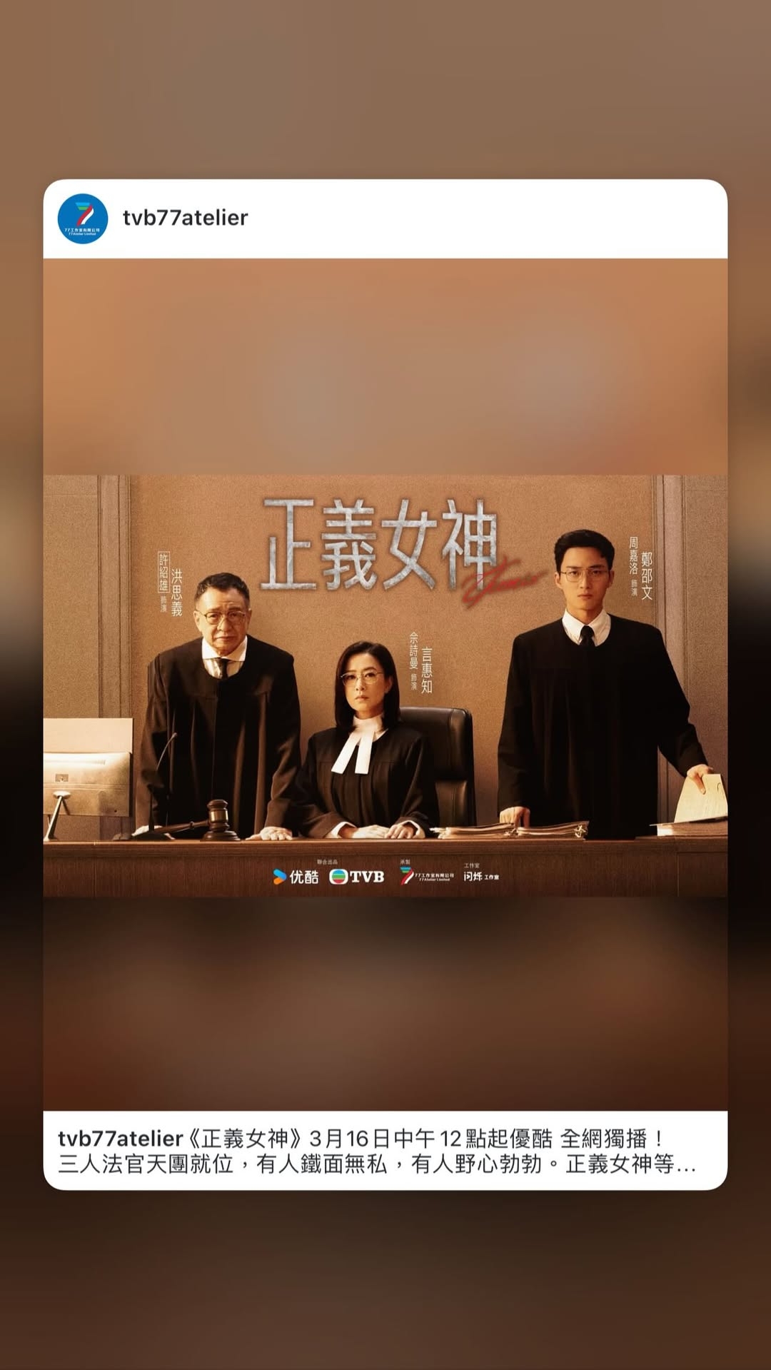 「方中Sir」 許紹雄 離世距今轉眼4個多月,而佢嘅家人曾公開提過,Benz雄嘅社交平台會一直保留予大家懷念。近日社交平台更自佢離世後更新,囡囡 許惠菁 代宣傳父親即將播出嘅遺作《正義女神》。