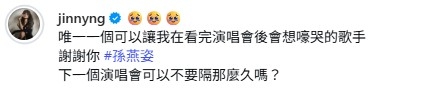 不過網民似乎冇諗住要放過Jinny,繼續留言笑佢「16年後再睇」、「計啱數就應該快少少有得睇」,就算網民點mean都好留言都好,相信都唔會影響Jinny追星成功嘅好心情。
