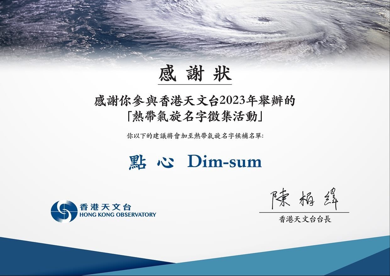 威仔當年就曾於社交平台,指自己報名參與名稱徵集活動,當時仲獲天文台頒發證書,而「點心」呢個名當時仲獲14000多位朋友投票支持。威仔近日就喺社交平台,經網友提醒先記起呢件事,真係威水。![]()