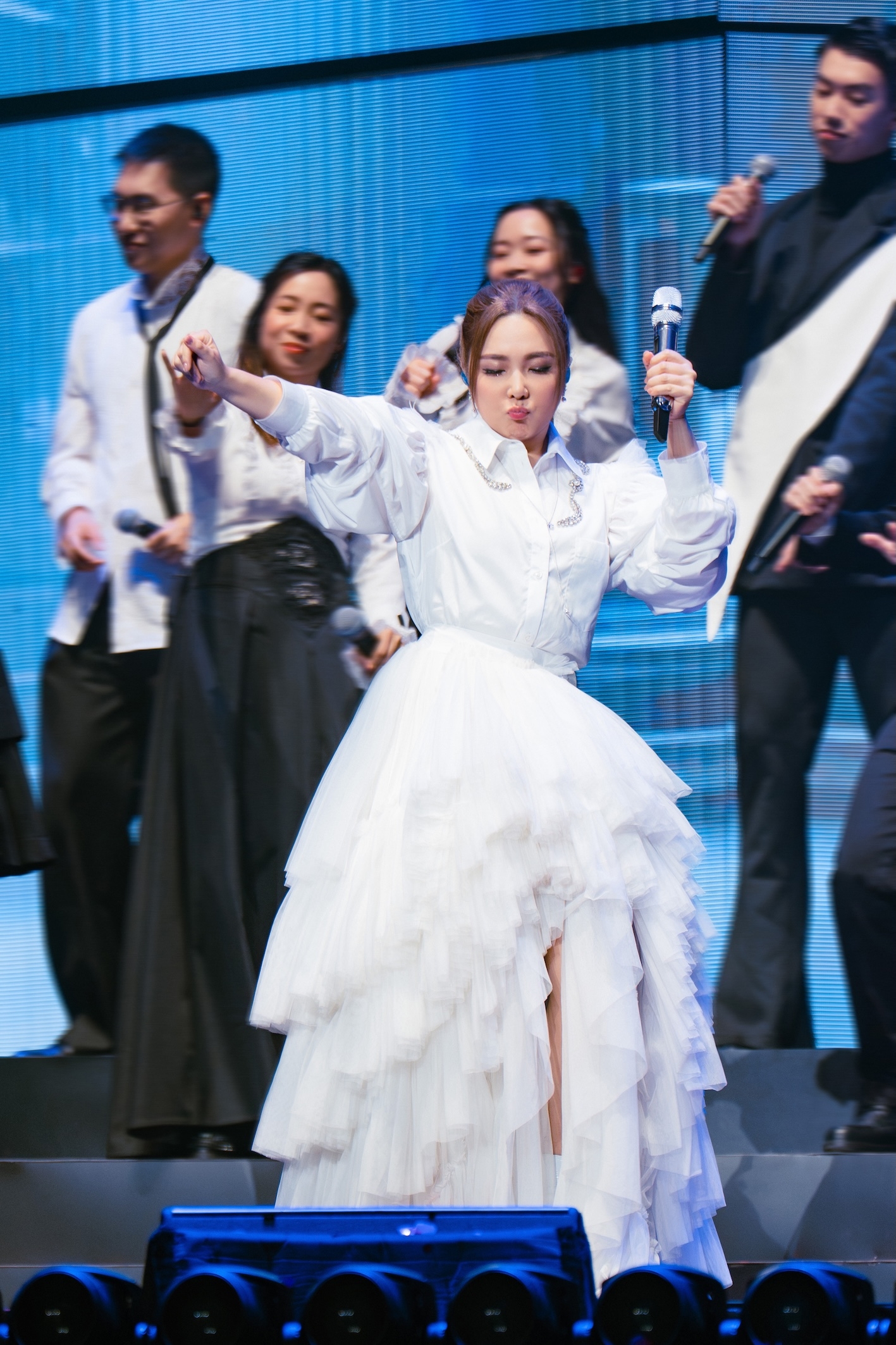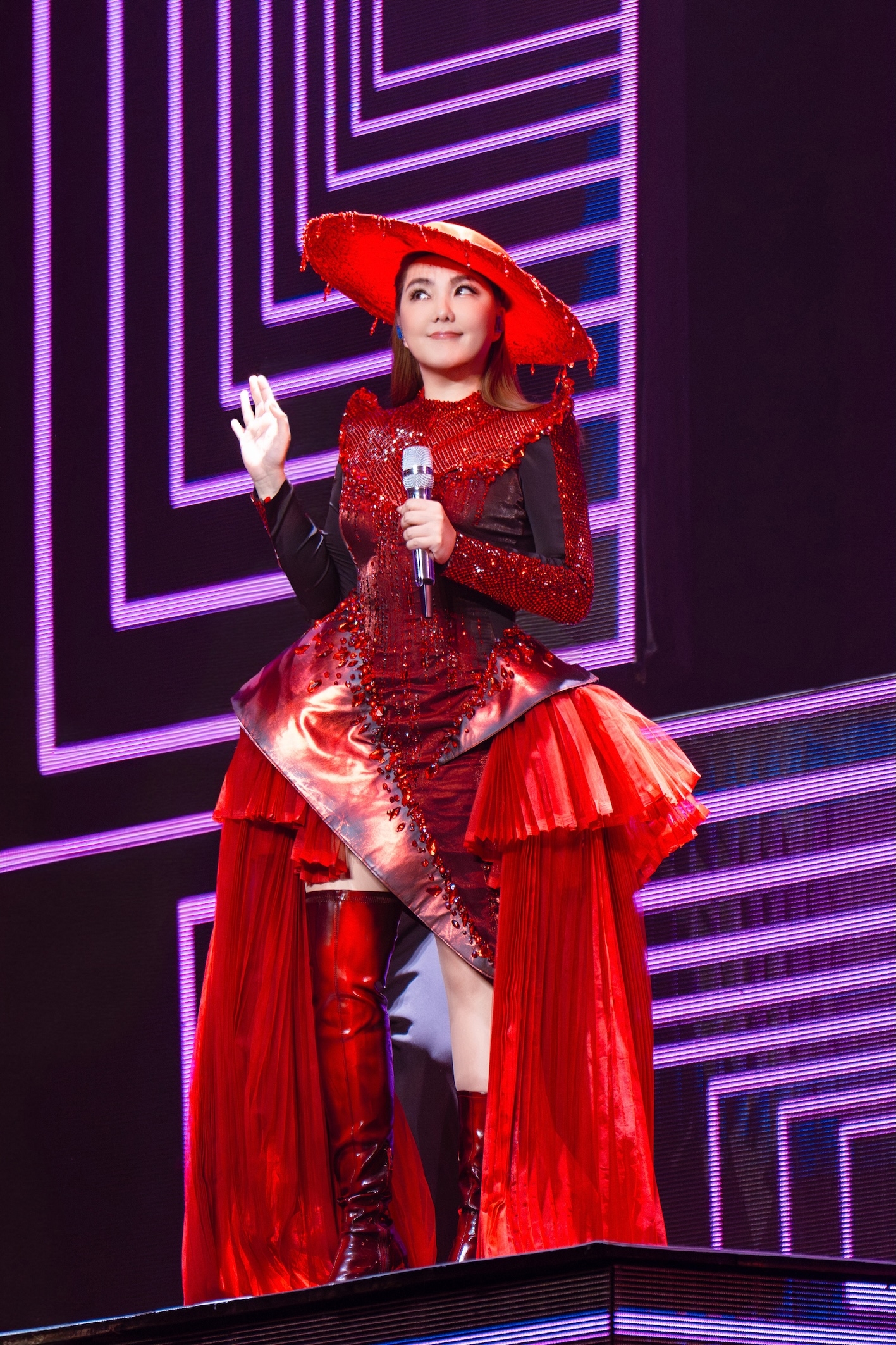 Janice呢晚繼續以細膩靚聲獻唱多首金曲,自彈自唱《ONLY LOVE》之餘,又同Guddy以及SVA合唱團一齊演出《鐵蘭花》同《所以我愛》,更挑戰Rap。而呢晚盲盒歌曲仲係佢2009年推出首張英文大碟中嘅《Please》。隨後獻唱《一場誤會》時又走到台前同觀眾近距離握手。![]()
