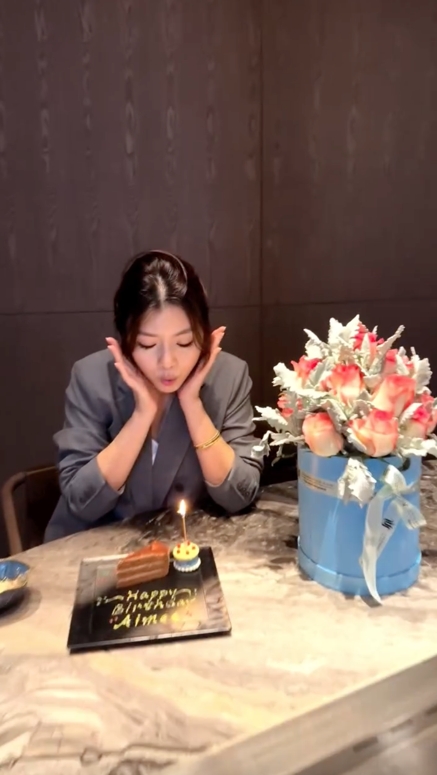 一眾老友嘅慶祝活動都已經咁豐富,身為老公嘅陳豪當然都有所表示啦,佢就同埋三個仔女一齊同Aimee食生日飯,期間仲派出細女Camilla為Aimee送上生日祝福,Camilla甜笑對住鏡頭話:「媽咪生日快樂,身體健康」講嘅時候仲做埋動作豎起拇指,相當可愛,難怪Aimee將呢條片post到社交平台時,都忍唔住留言話:「Mui Mui’s birthday wish in Cantonese is my fave. 🌺🎂」。![]()