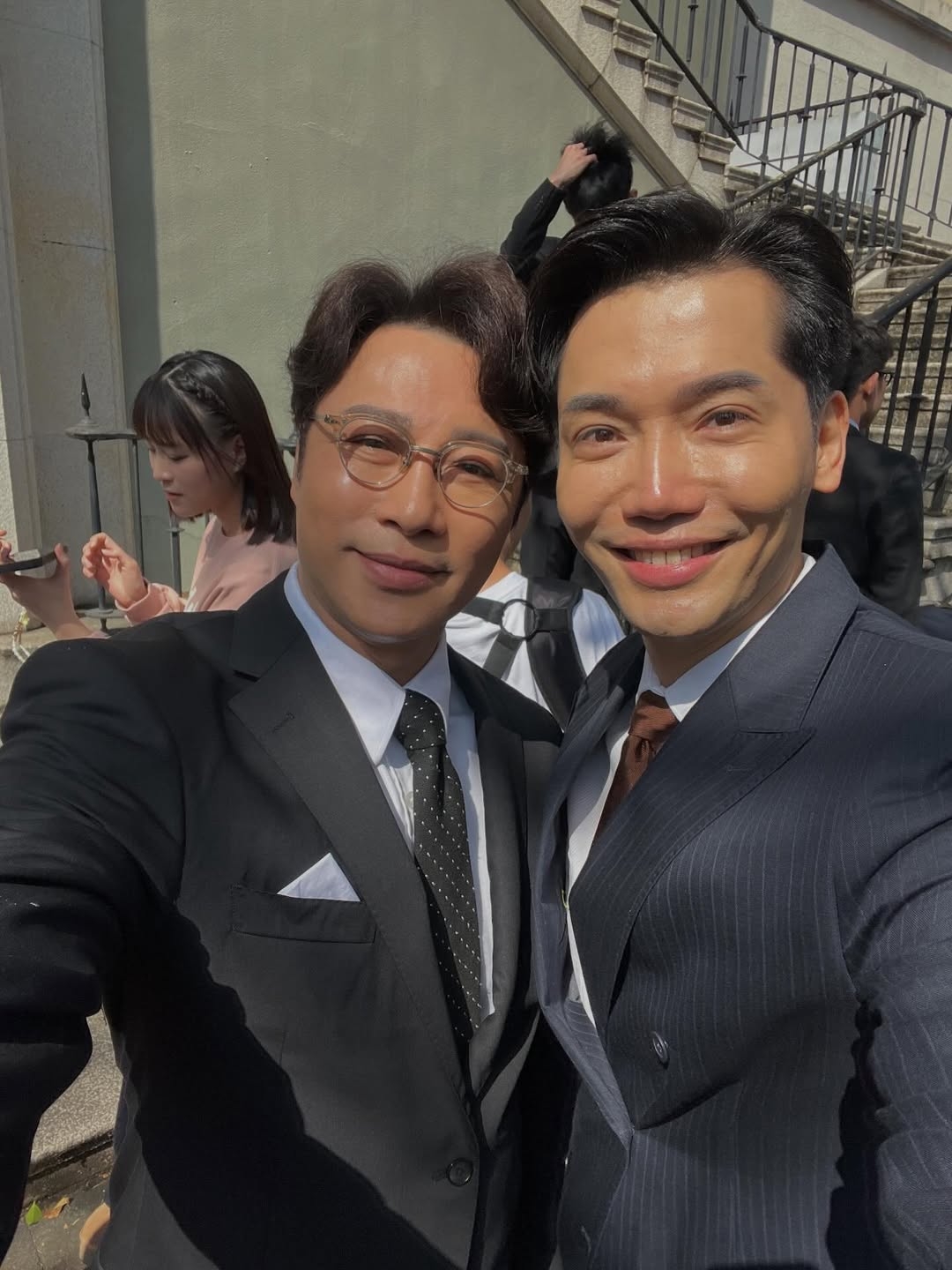 另外,喺劇中飾演法官嘅黃建東Derek Wong亦出Po表示好榮幸同譚耀文合作,仲話自揭喺2012年拍緊古裝《瘋狂歷史補習社》時,曾經被葉玉卿喺化妝間誤以為係譚耀文,一直好喜歡譚哥嘅戲好似《縱橫四海》同《笨小孩》等,亦喜歡佢嘅歌好似《烽火情天》,如今可以同譚哥合作簡直係夢寐以求,分享兩人及劇組嘅合照。
