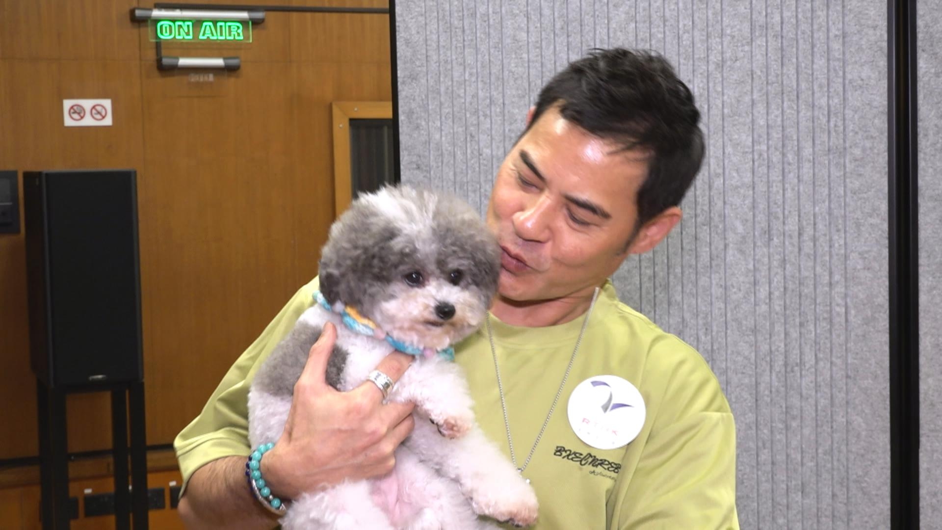 阿Ben同太太養咗三隻狗女,而手抱嘅就係7歲大嘅二女Cup Cake,阿Ben話當初睇中Cup Cake活潑性格,因為佢同太太比較靜,希望屋企有位好動小朋友周圍走,添加生活氣氛。不過Cup Cake原來係小霸王,平時喺屋企好嘈。講到三隻寶貝狗女,阿Ben話每次返到屋企都要先摸晒佢哋,再錫晒佢哋,過程中就令到佢感覺到自己好重要,而呢份感覺就非常良好咁話。