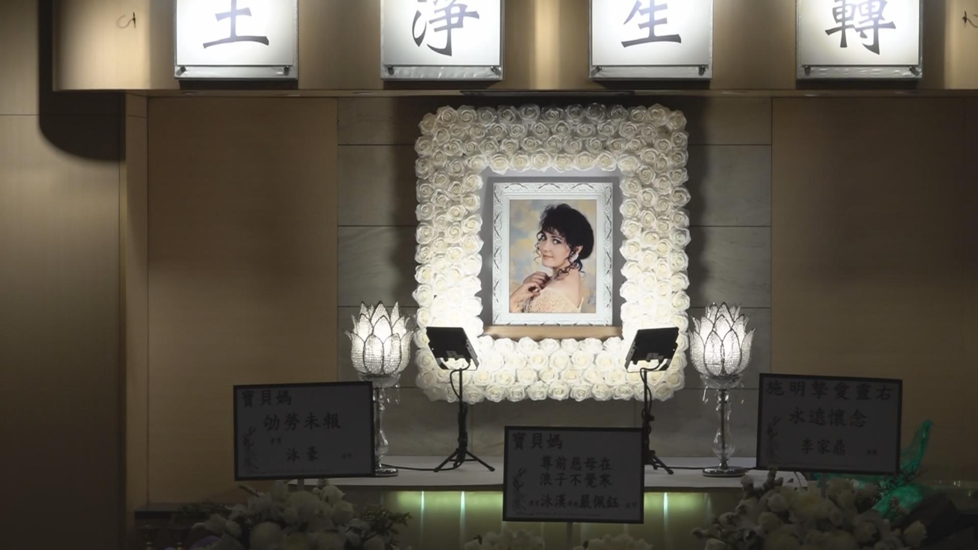 靈堂佈置簡潔,遺照選用咗施明側身回眸一笑嘅照片,橫匾寫上「轉生淨土」。喺設靈前夕,李家爆出連串家庭糾紛,包括花圈署名風波,有指李泳漢拒絕於家庭花圈上加上弟婦Agnes嘅名字。![]()