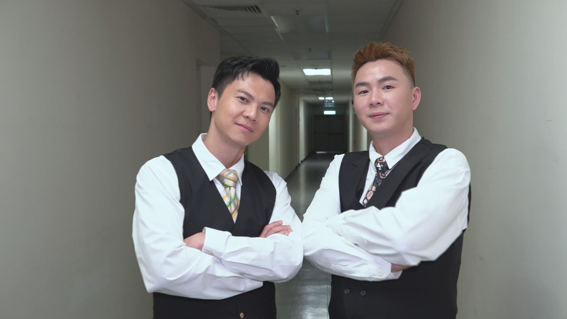 莫家淦KeithMok同雷小雷雙雙以馬甲服上陣,裝扮雖然一致,但睇落就有啲似侍應生,連佢哋都自娛一吓,莫家淦表示懷舊又有型一定諗起80至90年時代嘅譚詠麟AlanTam同張國榮LeslieCheung,有日搵到譚校長一張相,著住馬甲打條粗呔,覺得好靚仔,於是佢同小雷就各自去搵呢款衣著,點知著咗出嚟就幾似侍應生。![]()