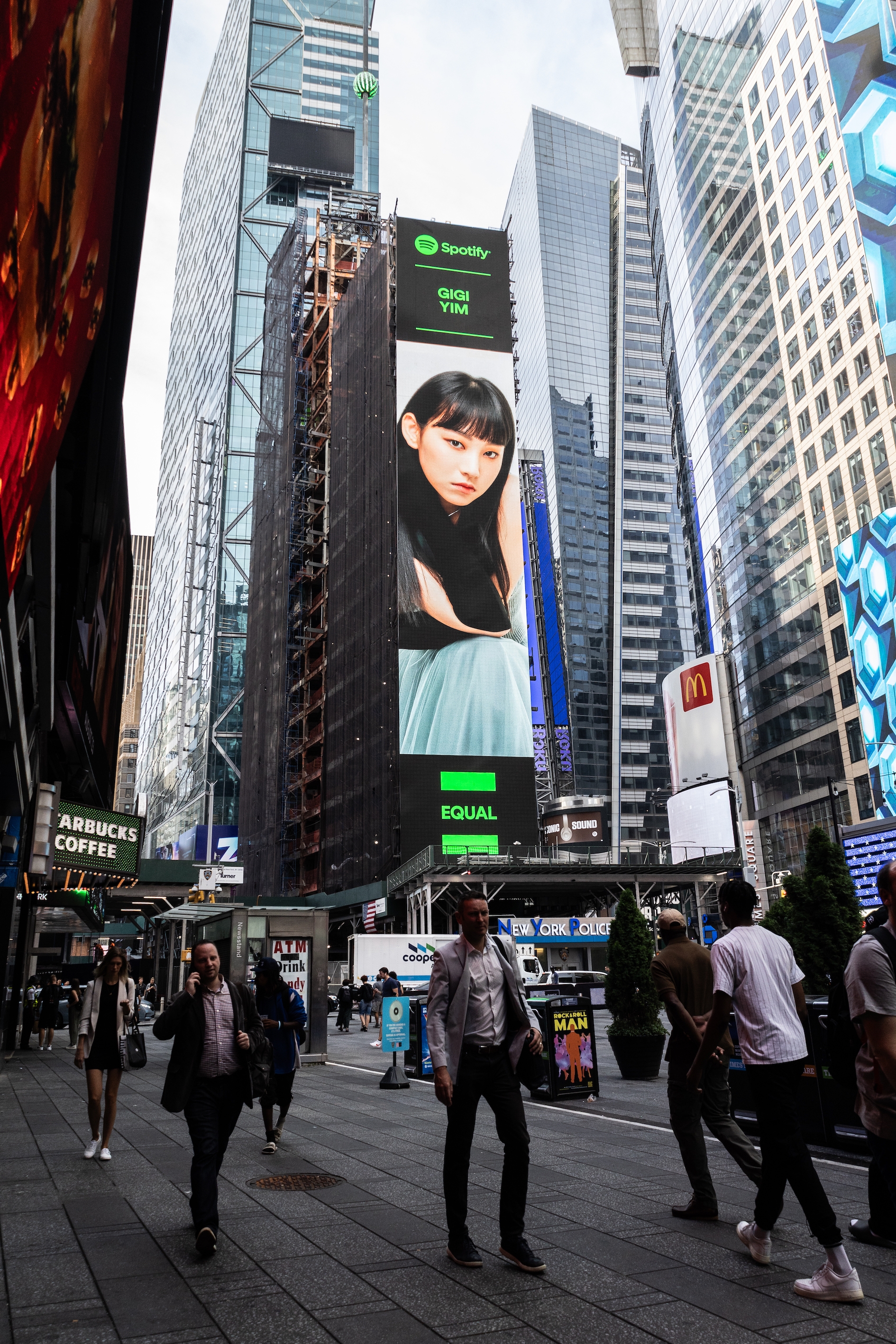 由音樂串流平台推出嘅「EQUAL Global Music Program」,宗旨係為女性發聲、爭取平權,每月都會網羅世界各地優秀女性音樂人演唱嘅歌曲製作歌單,今次Gigi就獲選成為8月嘅香港代表,Gigi嘅巨型肖像喺美國時間8月22號起,就出現喺有「世界十字路口」之稱嘅時代廣場顯著巨型LED屏幕上。