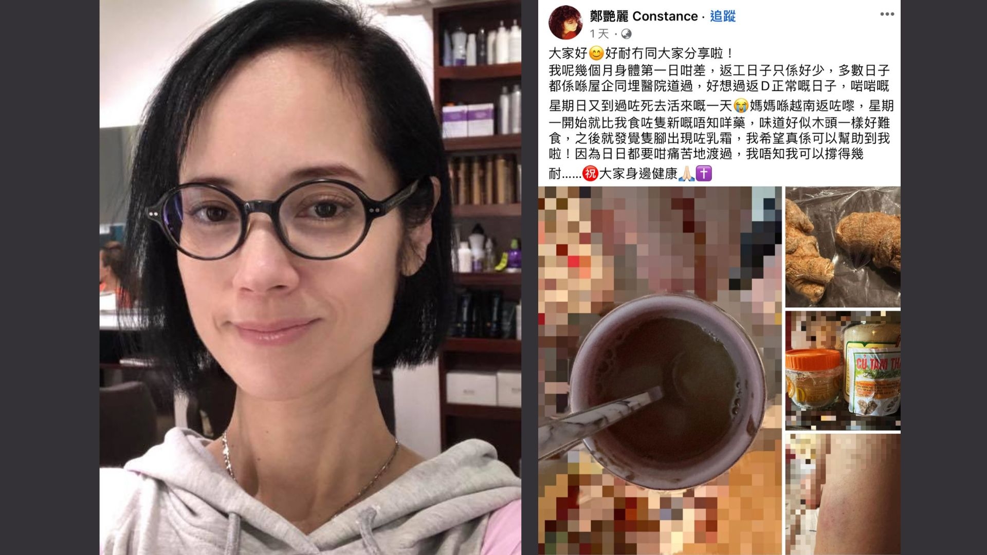 原來鄭艷麗每日放工返屋企都會嘔,胃又會痛得超厲害,鄭艷麗有湯水滋潤後,雖然仍會嘔,但係至少冇胃痛,頓時令佢感覺既窩心又溫暖,感性寫道:「世界上某啲地方真係仲有人情味嘅。其實我係好缺乏畀人愛惜嘅,而家每日都覺得好有溫暖、有人愛惜我,所以一定要同大家分享。我諗我而家應該可以做到退休,唔使再成日轉來轉去啦!」