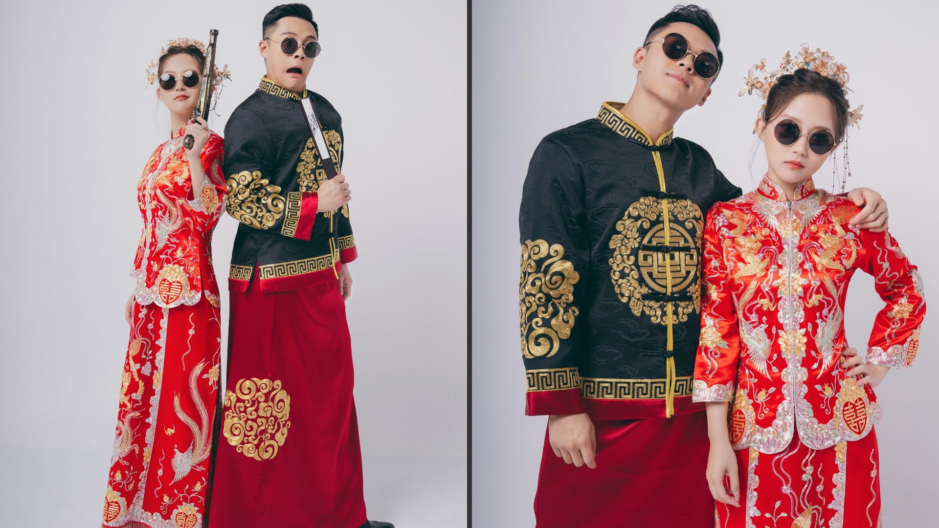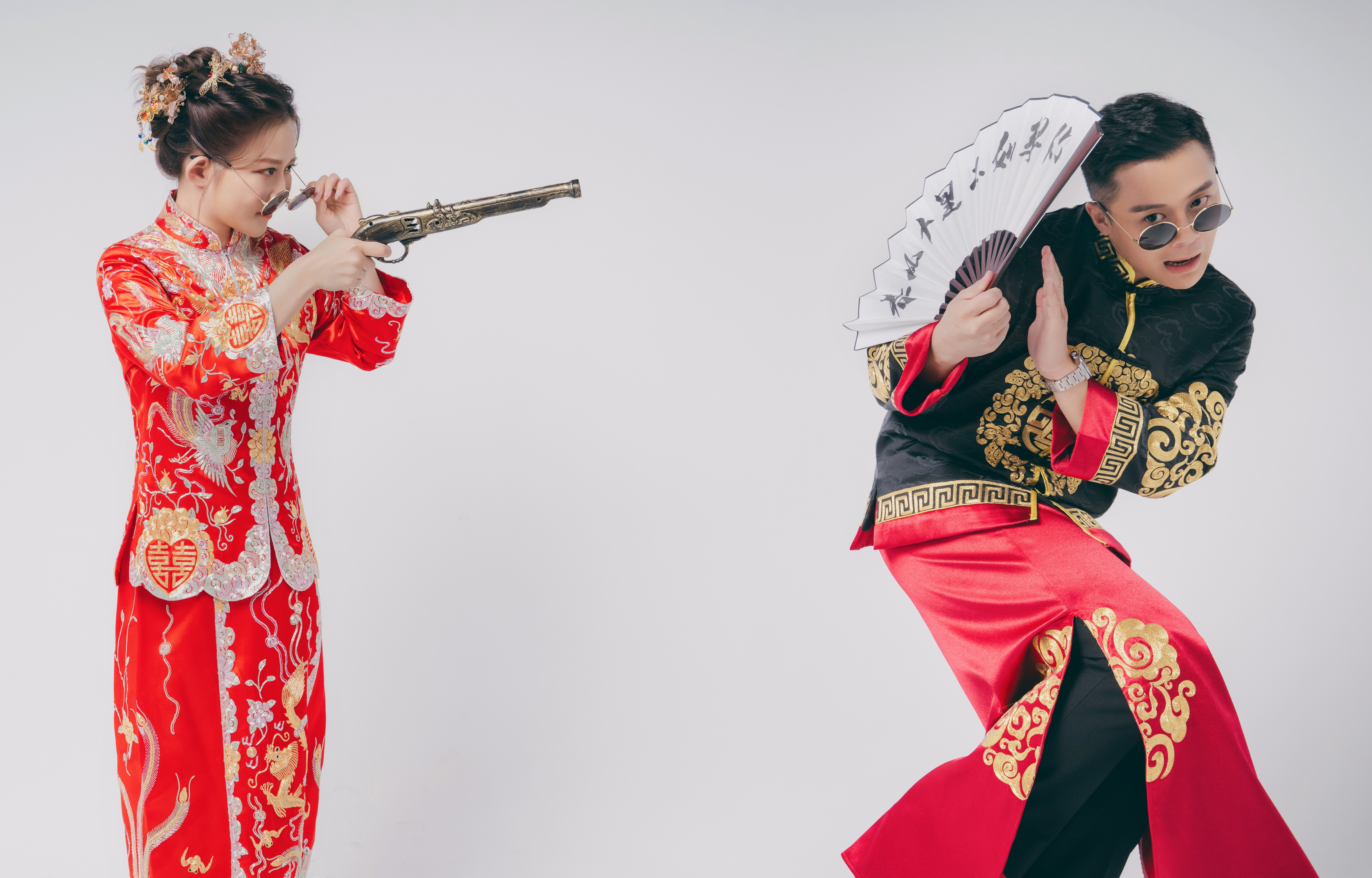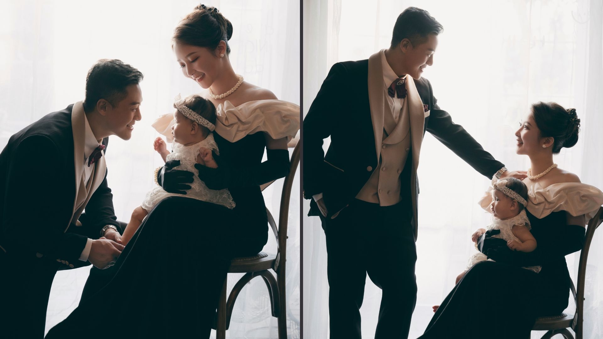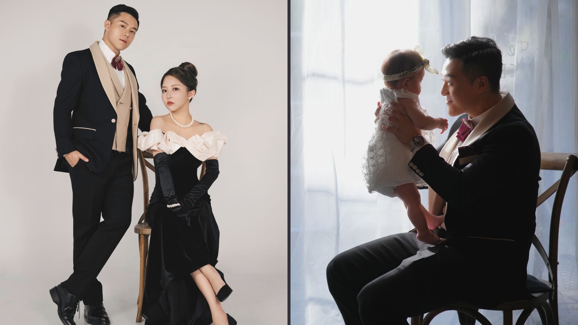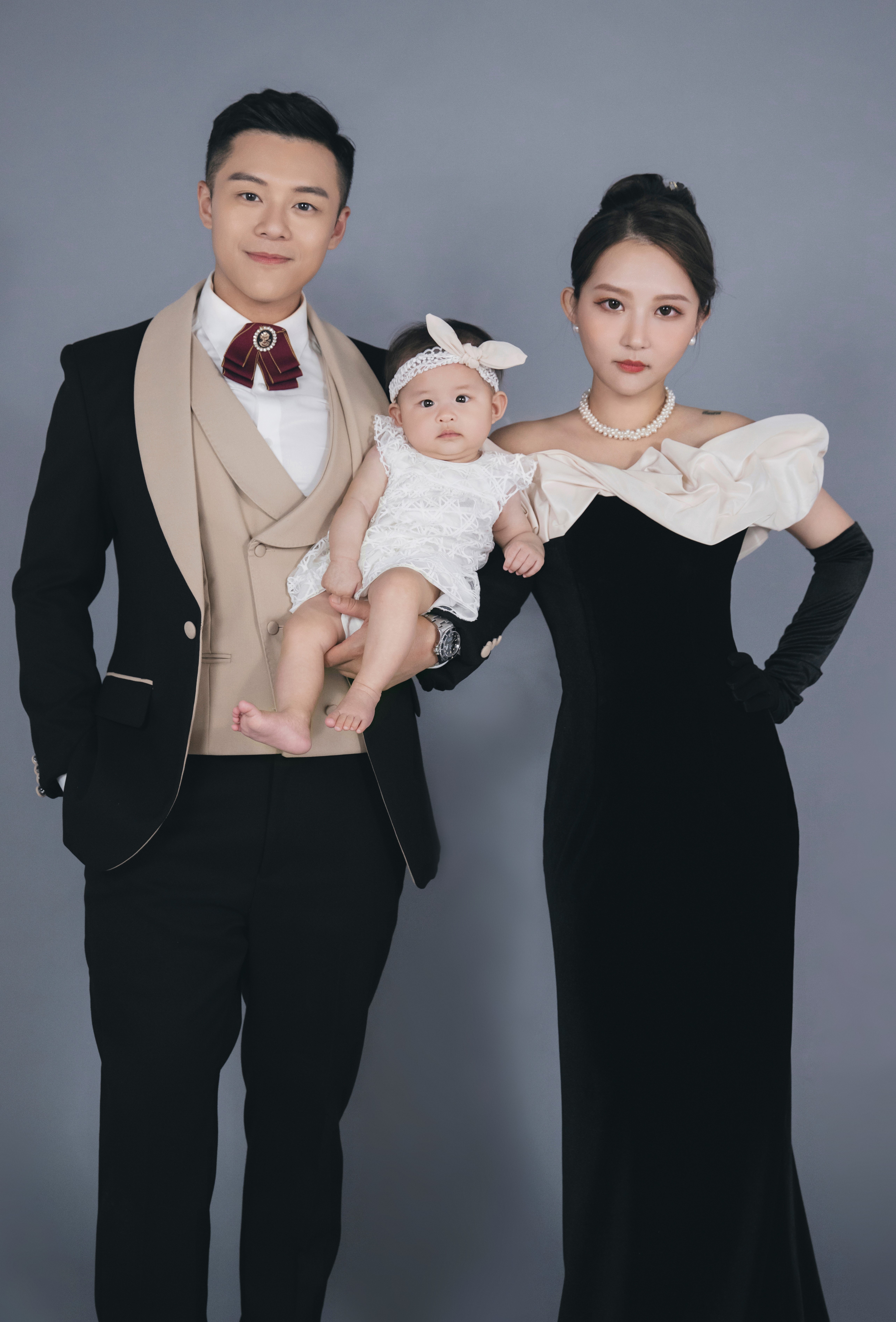 關曜儁記得一開始攝影師叫佢哋唔好笑,又叫太太要cool啲,關曜儁心諗:「我哋影相笑係最好睇㗎喎!」後來二人睇返影出嚟嘅效果又真係好OK,第二套就係影中式褂裝,佢同太太一齊攞道具即刻上咗身,擺出多個古靈精怪嘅甫士,關曜儁覺得呢一輯相有一份傳統得嚟又充滿玩味嘅感覺;呢輯攝影嘅最後一套衫亦係凱妃出場,關曜儁開心係女兒凱妃好配合,又笑又一齊cool,整個拍攝流程好順利。![]()