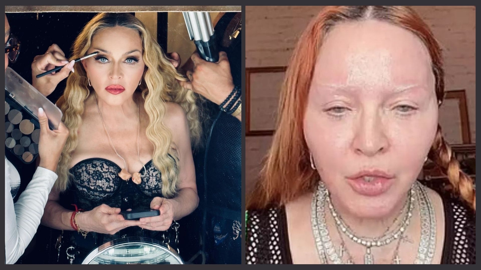 外媒報道指麥當娜平時濃妝豔抹亮相,早前喺社交網站疑流出麥當娜素顏嘅畫面,見佢兩眼無神、嘴唇浮腫,有網民猜唔係卸妝後睇落較憔悴,樣子似「多處動手腳」,根據英國「每日郵報」分析似動過提眉手術、鼻子及嘴唇亦似乎有填充物,造成面部睇落唔算好自然;之不過麥當娜重啟巡演啟動,似透過化妝回到以往豔麗嘅外貌,以最好姿態跟觀眾見面。
