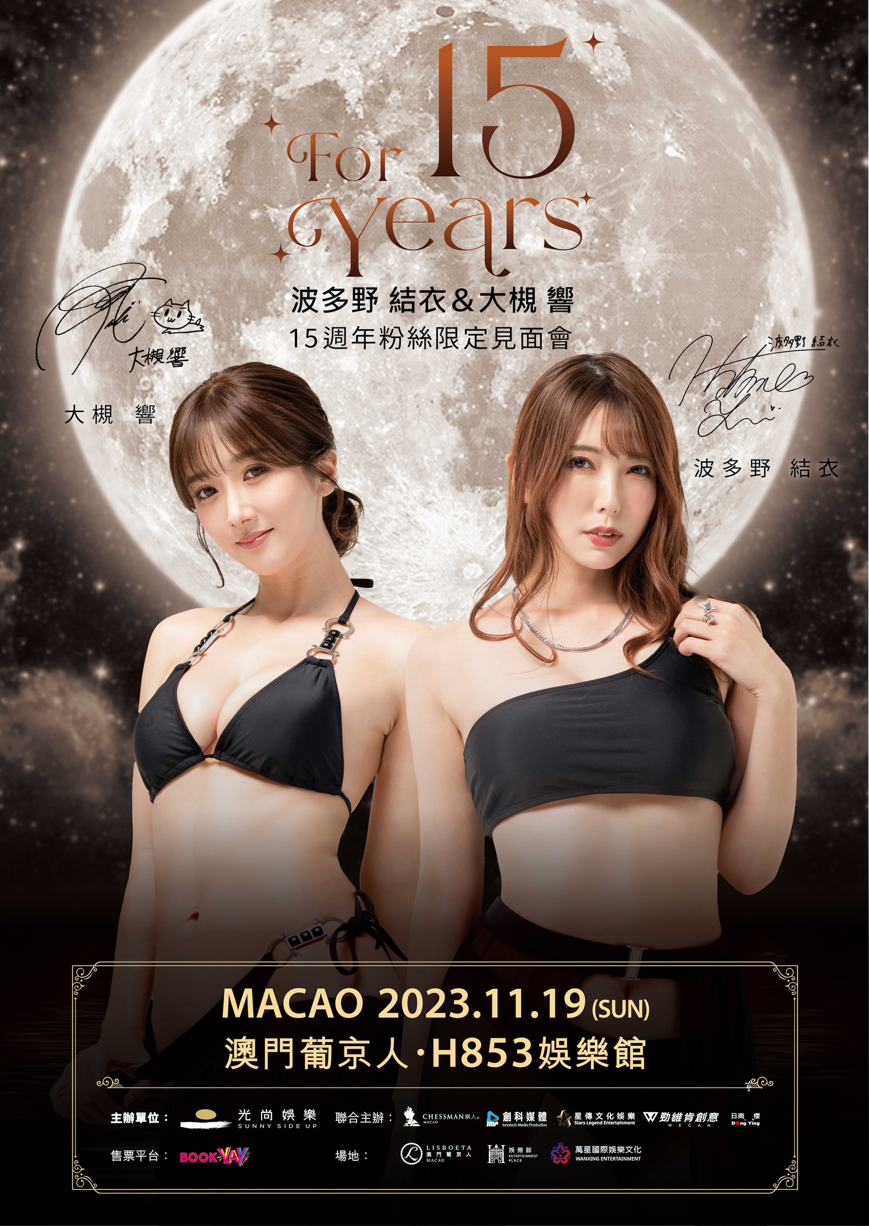 9月因為出道15周年先後喺台北同香港舉行Fans見面會嘅AV女優 波多野結衣 同 大槻響 ,下周將會再次喺澳門同Fans見面,除咗邀請咗霍哥擔任司儀主持活動之外,大會仲宣佈喺11月11日內購票將有7折優惠一眾「光棍」。