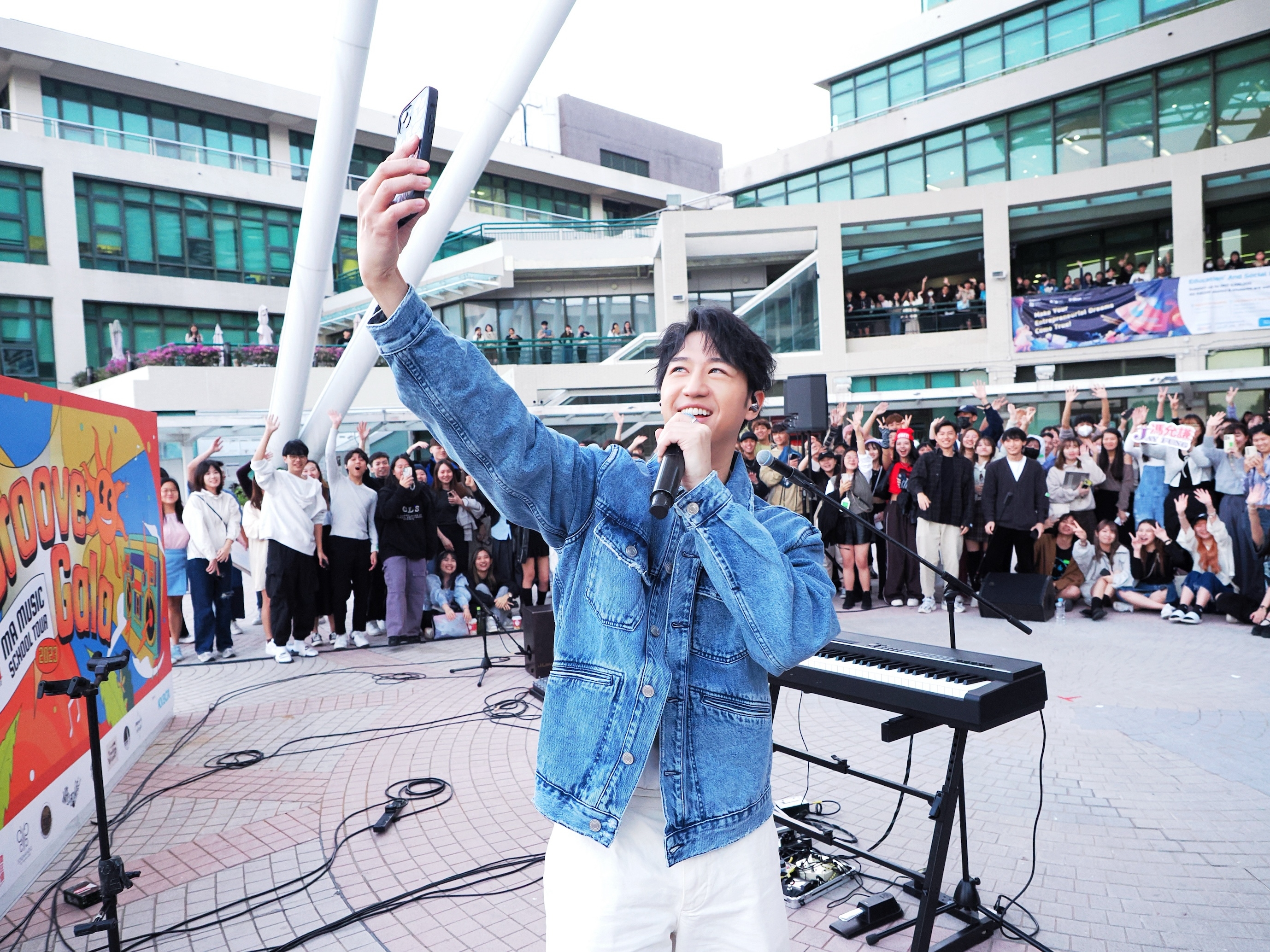 有唱片公司動員旗下歌手舉辦一連串大學School Tour,尾站日前 喺 香港教育大學中央廣場舉行。 馮允謙 梁釗峰 雲浩影 ANSONBEAN Nowhere Boys 同埋近日先出道嘅新女團 Me& 首次參與表演,吸引數百名師生捧場,仲企滿兩層校舍,氣氛非常熱鬧。