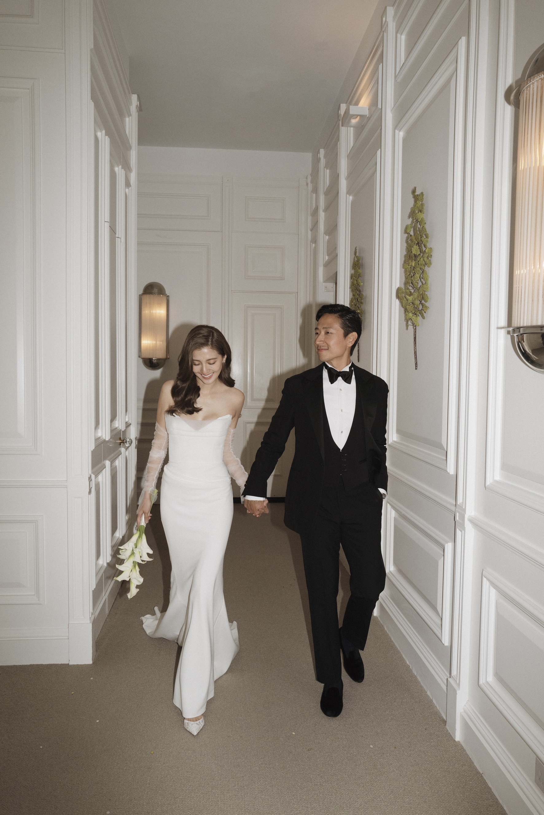 相片中一對新人分別身穿中、西式禮服,千語嘅中式裙褂可見佢手上嘅巨型龍鳳鈪,夫妻兩奪服用設計更係一式一樣。而另一款西式打扮圖片,新娘以一襲貼身露肩婚紗現身,盡顯好身材,齊齊切結婚蛋糕之餘一對新人嘅甜蜜微笑仲更顯佢哋嘅溫馨甜蜜。新人亦發文公開感謝親友同外界嘅祝福。