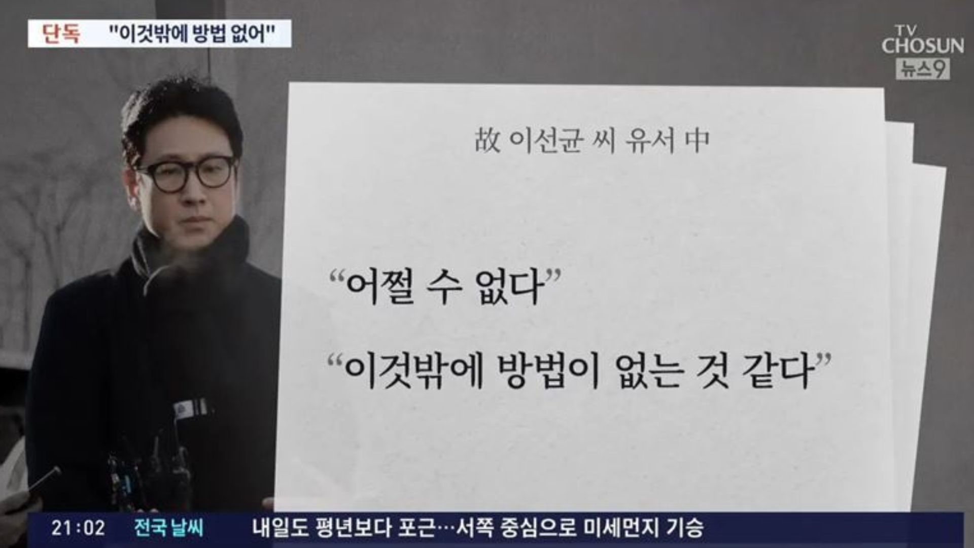 韓星李善均曾演《上流寄生族》、《我的大叔》等知名作品,李善均於10月捲入染毒傳聞,雖然驗毒結果皆為陰性,但李善均同時又被爆婚外情,令其形象受重挫,李善均於12月27號輕生,終年48歲。靈堂設於首爾大學醫院,直到凌晨陸續有同僚到場送別,12月29日中午12點出殯,儀式採非公開方式進行。![]()