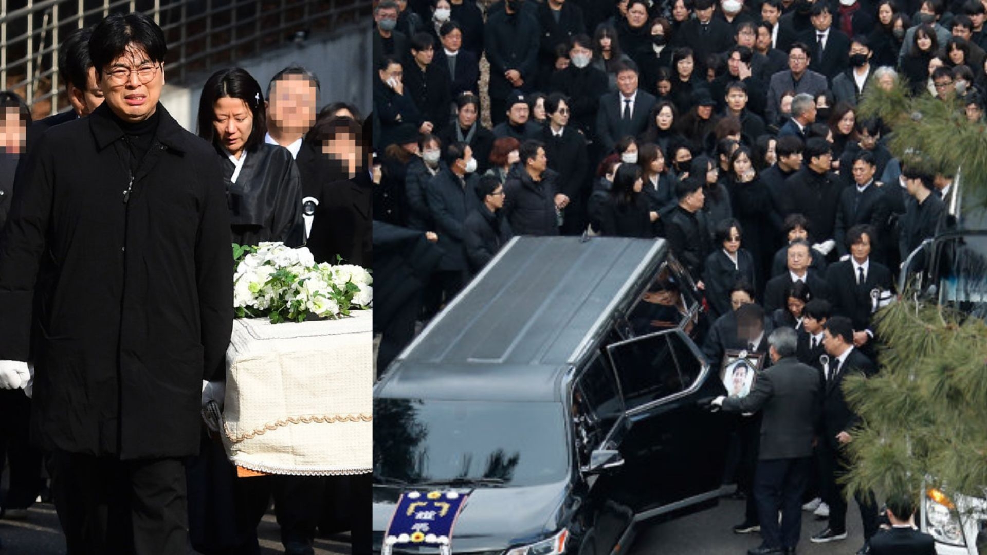 李善均於12月29日中午12點出殯,謝絕媒體採訪,靈堂畫面並未公開,現場仍有媒體守候,據韓媒報道指李善均兩位兒子本於海外留學,已緊急返韓送爸爸最後一程,這兩天一直守在靈堂。兒子捧著李善均遺照步出,太太田慧振哭成淚人 ,整個人憔悴疲憊,而《上流寄生族》導演奉俊昊扶靈時傷心痛哭,難捨好友。![]()