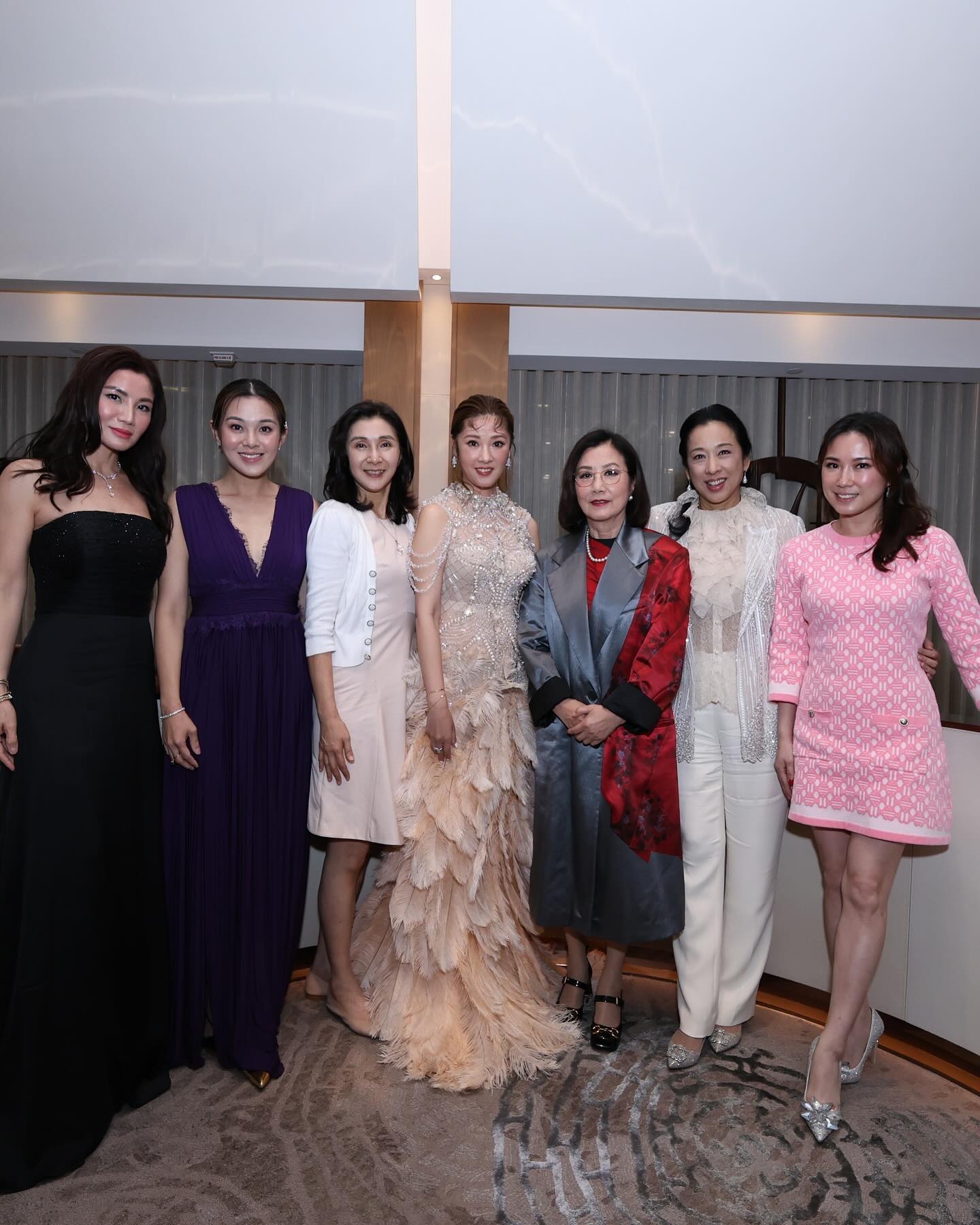 月中就踏入50歲嘅 翁嘉穗 明艷照人,以一身低胸透視拖尾長裙與丈夫一同與賓客合照,之報再換上另一套羽毛晚裝,與到場慶賀嘅嘉賓共度歡樂時光。佢嘅社交平台亦感謝親友嘅見證同祝賀。