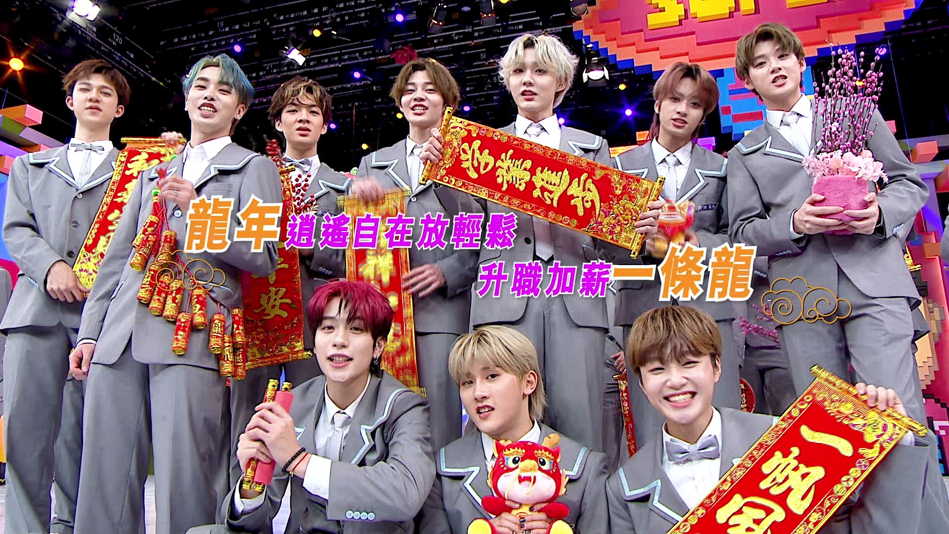 之後輪到《亞洲超星團》51名超星練習生獻唱《新年快樂》送兔迎龍,一班後生仔又唱又跳,活力十足!