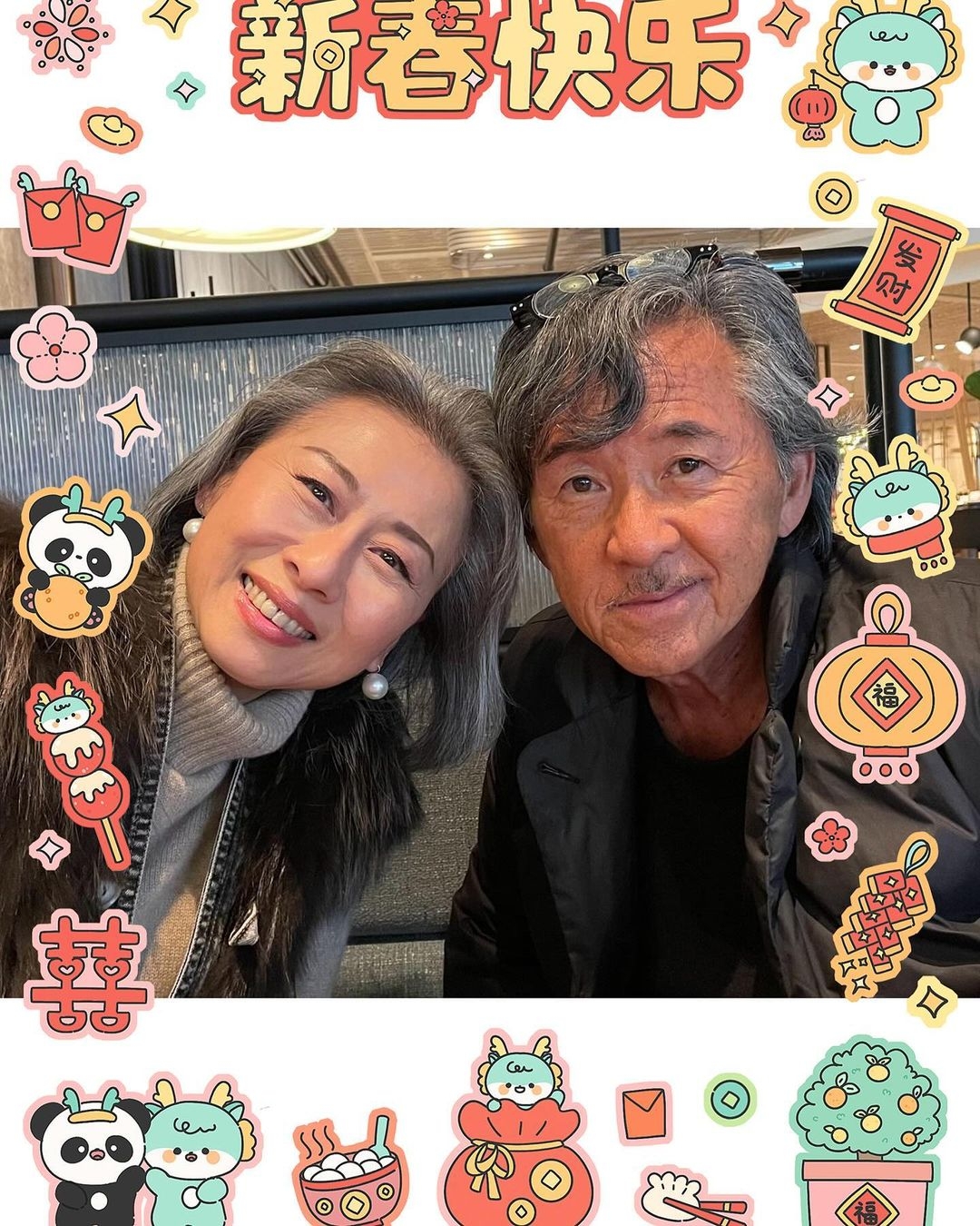 中國人重視農曆新年,係一家人開心團聚嘅日子,不少藝人喺網上貼出全家福,包括林子祥、洪永城、袁偉豪、譚俊彥等,袁偉豪就貼出愛妻張寶兒同阿仔「袁咕碌」嘅合照,祝大家新年快樂,而一向孝順嘅譚俊彥(Shaun)就貼出三代同堂嘅賀年全家福,見狄龍精神奕奕,攬住寶貝孫仔,而新婚嘅馬國明同湯洛雯已準備派雙封利是。
