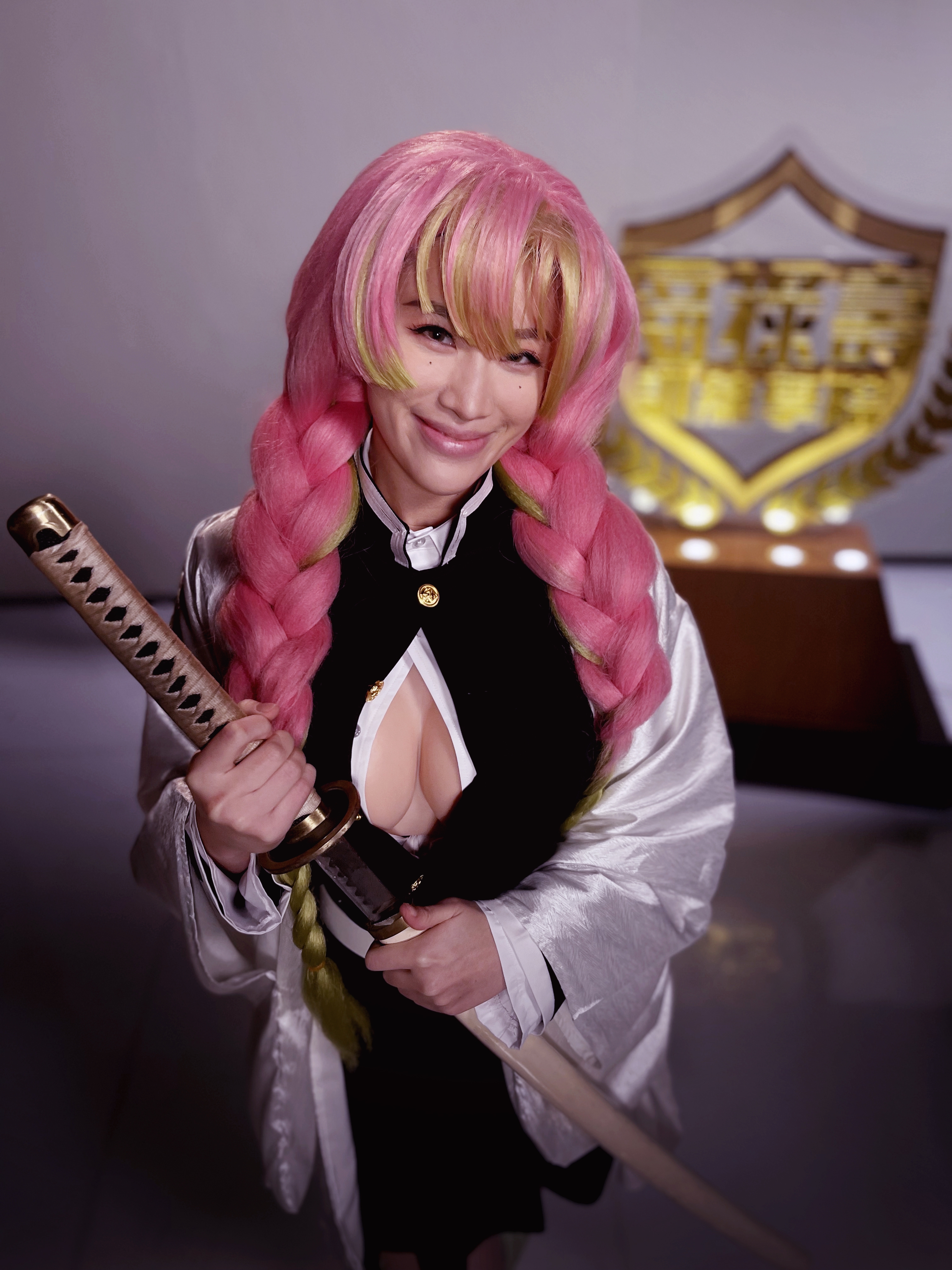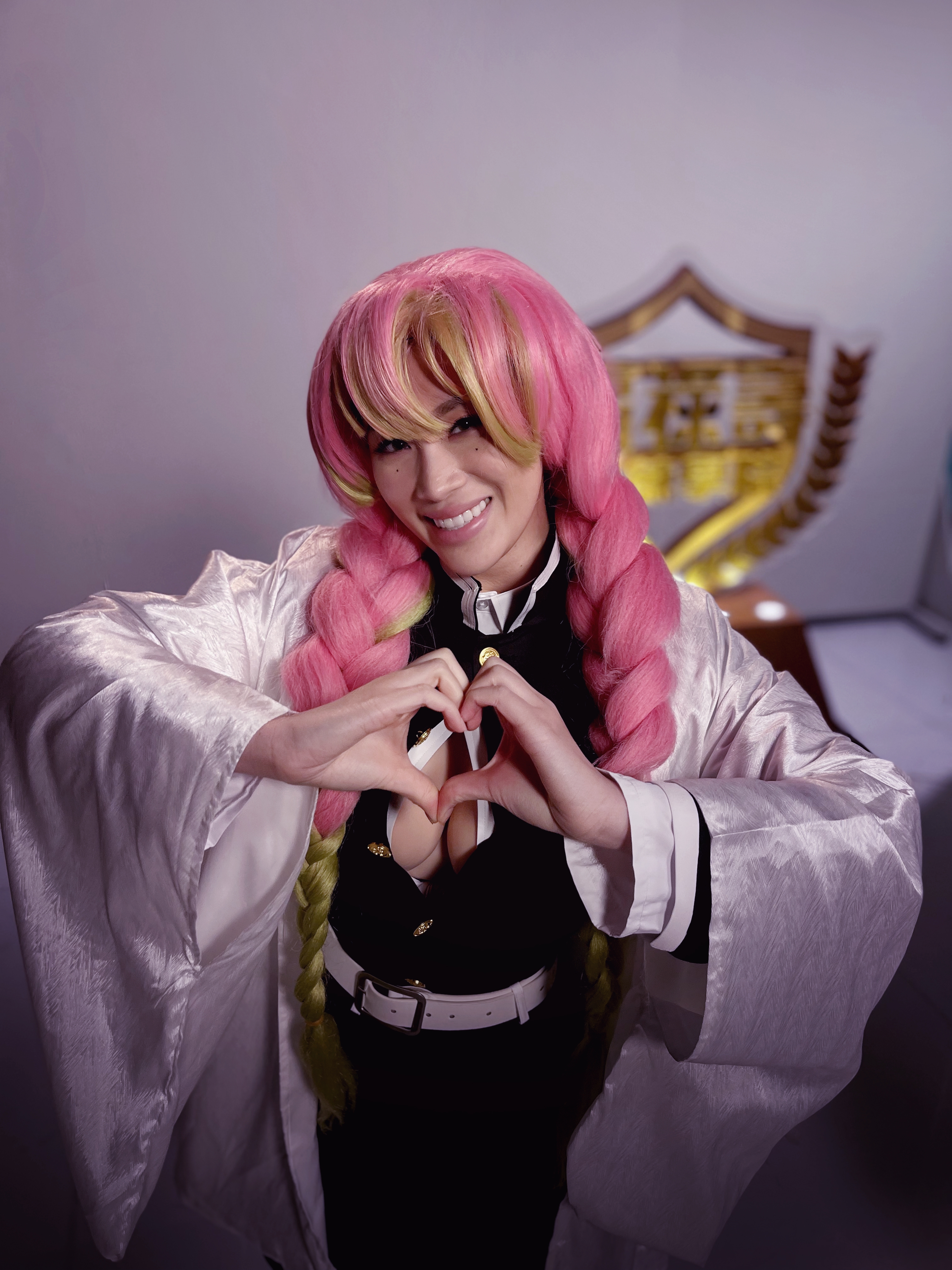 今次宣傳照重點可以話集中喺Juliana身上,身材驕人嘅佢以日本著名動漫《鬼滅之刃》中嘅戀柱造型現身,心口開窿造型性感又忠於原著設計,細節亦跟到足,一頭Shocking Pink加金黃大孖辮假髮,加上眼下兩粒銷魂癦,配以Juliana嫣然一笑,電力非常驚人。Juliana對造型亦信心十足,更俯身大擺心心手勢吸Likes。