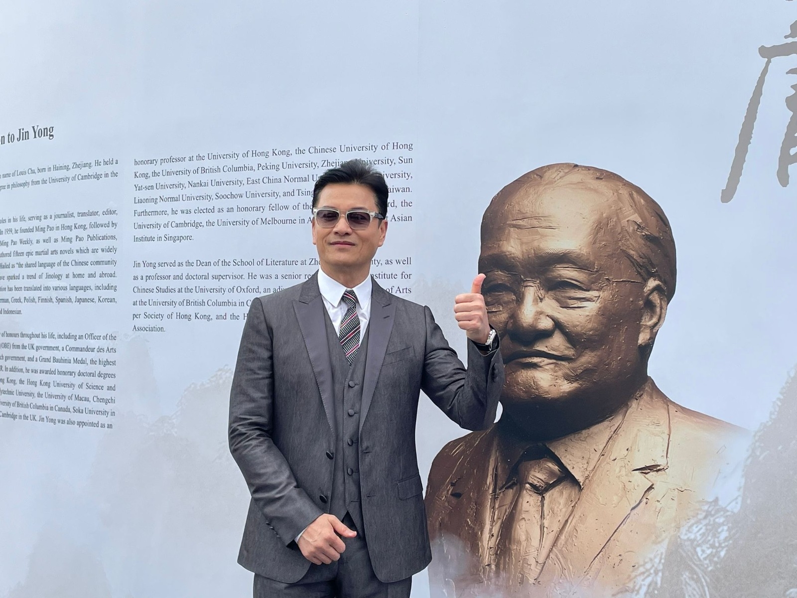噚日係武俠文學泰斗金庸先生百年誕辰,喺中環就舉行咗一個紀念活動,曾志偉、方力申、張玉珊、楊小娟等現身出席,而曾扮演過金庸小說角色人物嘅呂良偉、羅樂林、黎耀祥、白彪、米雪、劉丹及呂頌賢都有到嚟。身為金庸武俠小說迷嘅志偉話金庸筆下有一個字,係英文寫翻譯唔到,就係「義」字,而呢份俠義精神完全展現喺武俠世界入面,將中國人俠義嘅特徵寫晒出嚟,佢話搞到年輕人睇完之後就好似學咗一身好武功再去社會闖蕩。![]()