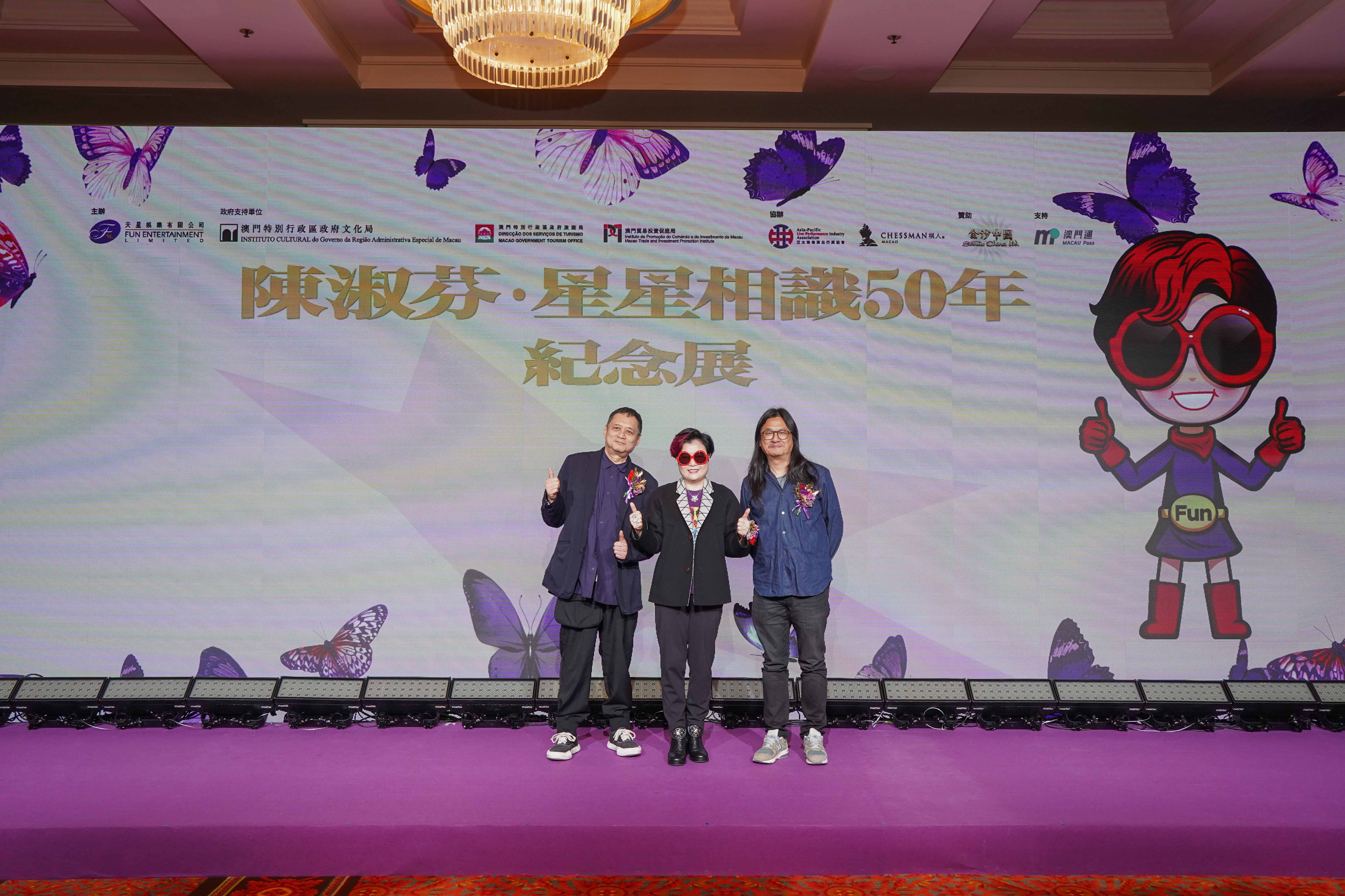 製作人陳淑芬嘅「陳淑芬.星星相識 50 年.紀念展」,20號喺澳門舉行開幕儀式,除咗策展人陳淑芬外,仲有美術及形象指導張叔平、著名攝影大師夏永康及一眾官員亦有出席。![]()