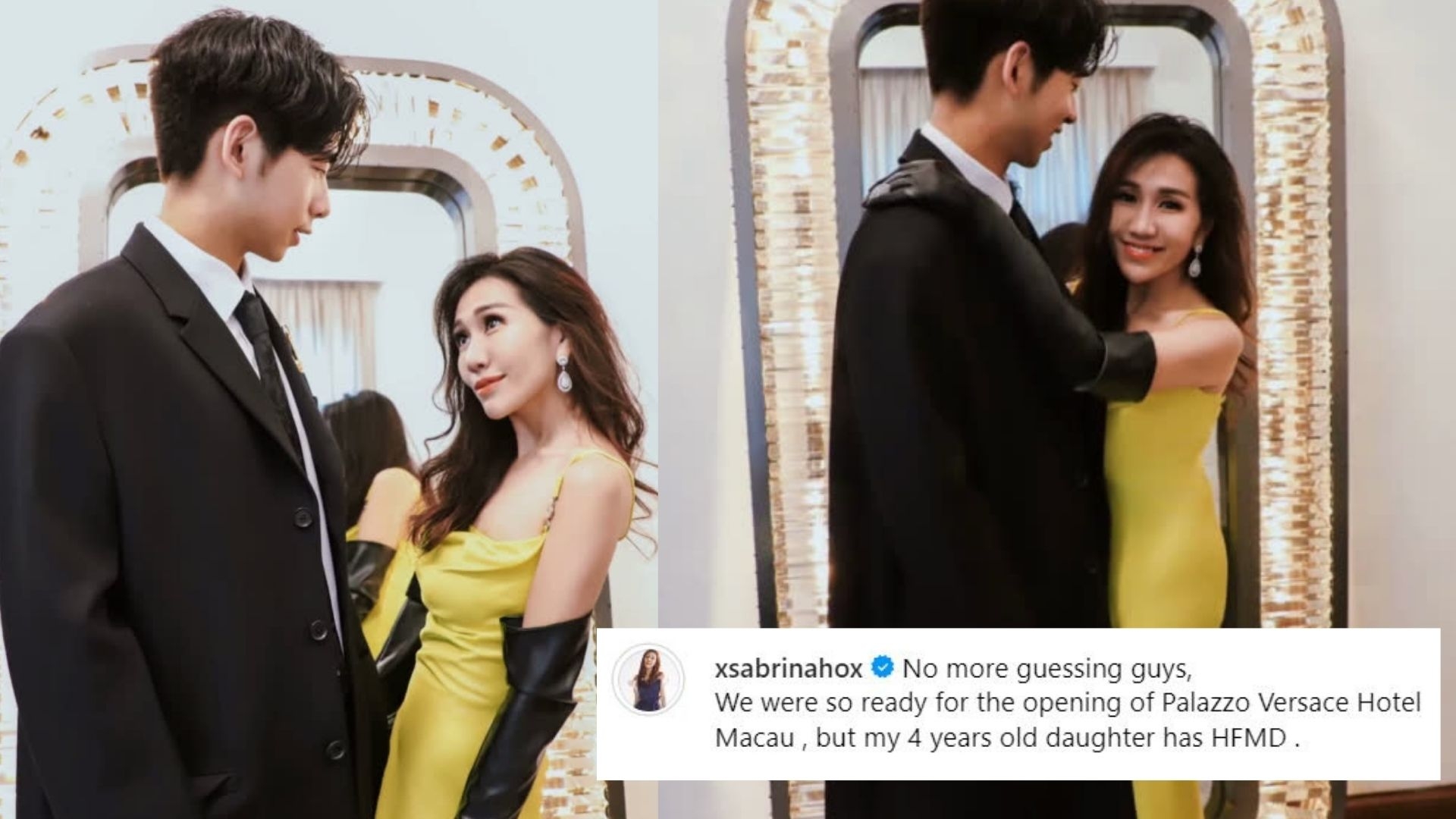 何家總動員日前現身一間澳門酒店開幕儀式,適逢當日係四太梁安琪生日,其大女何超盈卻未見蹤,超盈噚日喺IG上載多張與老公辛奇隆合照,解釋二人未能出席,因為女兒染上手足口病。