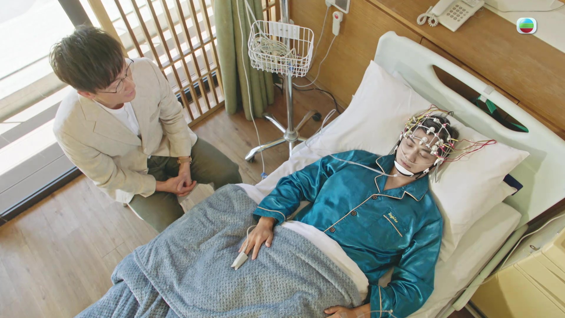 Fred首度扮演植物人,事前刻意上網做Research研究角色:「我個Case係對眼郁唔到又眨唔到、又表達唔到自己嘅情緒,劇情講小方訪問我時,我有好多哀愁情緒表達唔到出嚟,呢點係最難。」Fred又笑言拍攝過程其實幾舒服,全日都瞓喺度,不過劇中嘅老妝就要花兩個鐘先完成。![]()