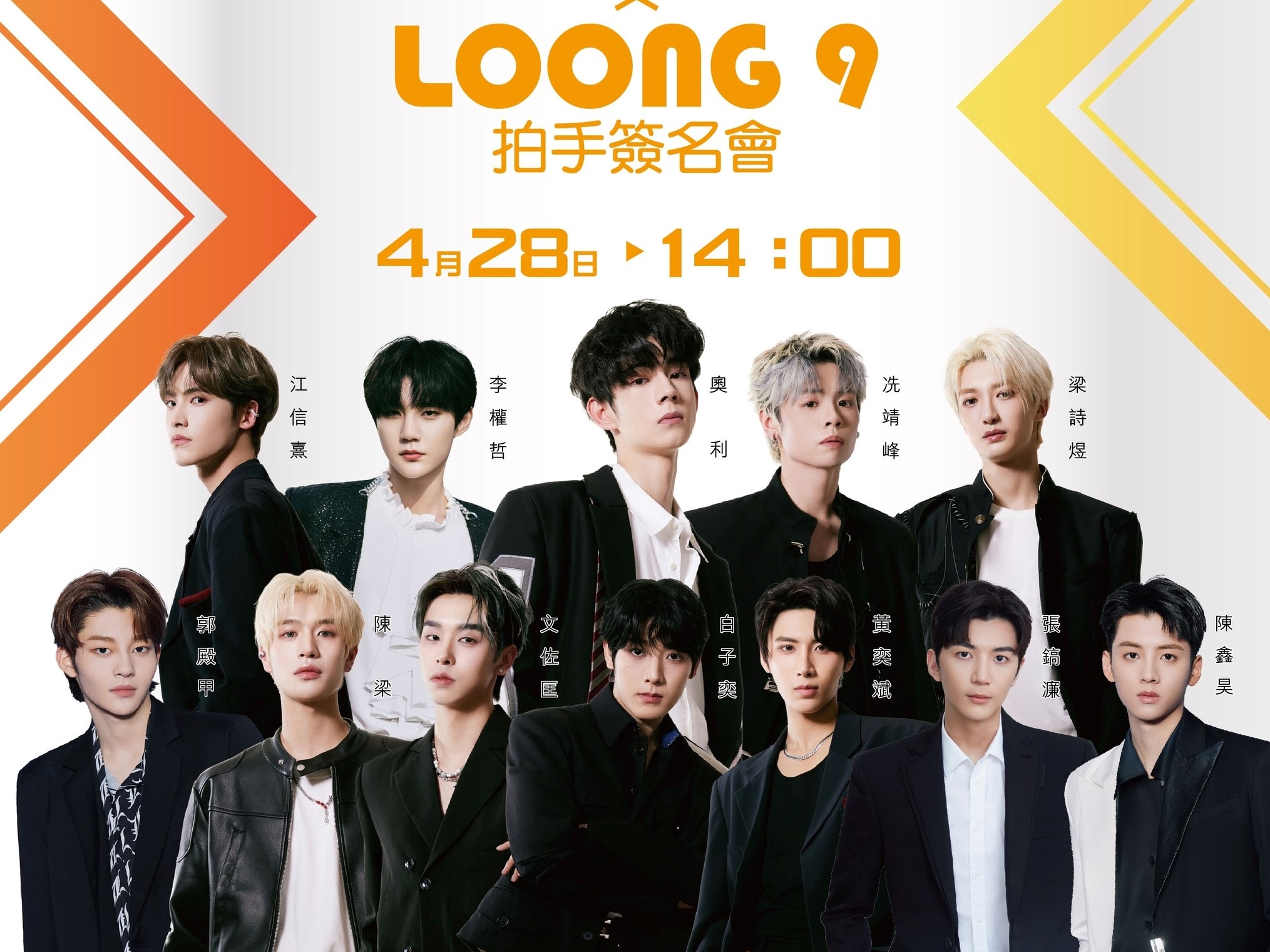 LOONG 9十二位成員將喺4月28號喺香港舉行全員拍手簽名會,多位成員喺微博轉發相關帖文。LOONG 9成員亦有拍宣傳短片,奧利、陳鑫昊、冼靖峰、文佐匡、黃奕斌及江信熹亦以廣東話自我介紹。![]()