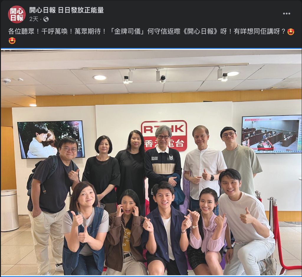 港台節目《開心日報》開播近22年,日前終於光榮完成呢個歷史任務,喺最後一集多位歷代主持均有現身一齊開咪,當中包括由加拿大返港嘅何守信。