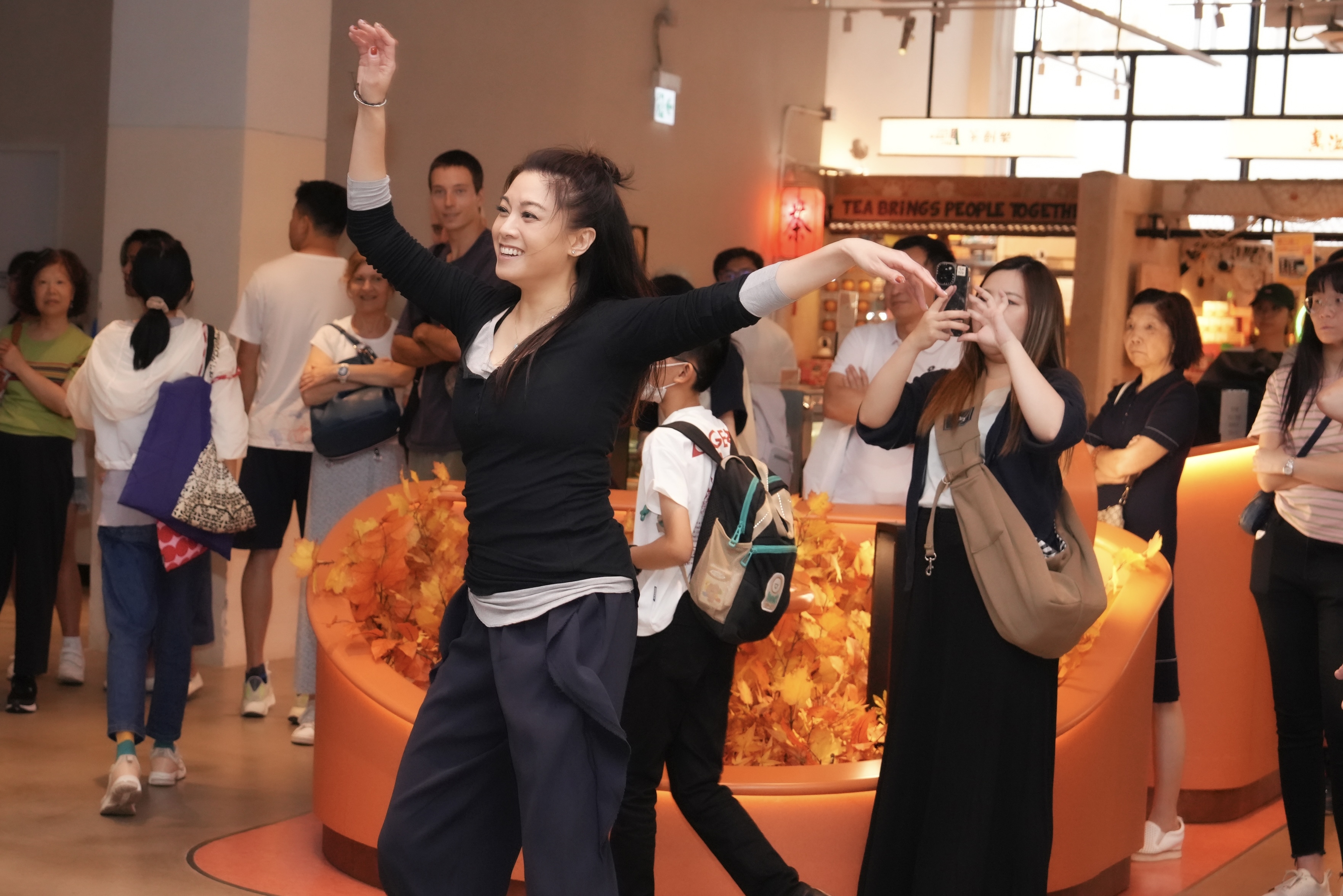 與法國好有淵源嘅廖碧兒,笑言指好彩寶刀未老仲跳得:「我三歲未識行已鍾意跳舞,上次嚟開幕活動,見到佢哋跳得好開心,大人同小朋友跟住音樂跳舞,所以今次我即興加入,其實我都識少少, 呢種KHAM舞係Modern Dance,冇對與錯嘅,只要你覺得感覺舒服就跟著音樂跳。」