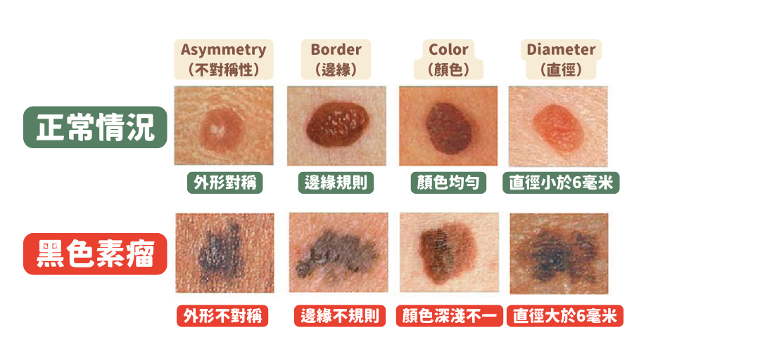 黑色素瘤的檢測並不困難,有五個簡單的自我檢測方法,即「ABCDE」原則,可以幫助我們及早發現並治療: