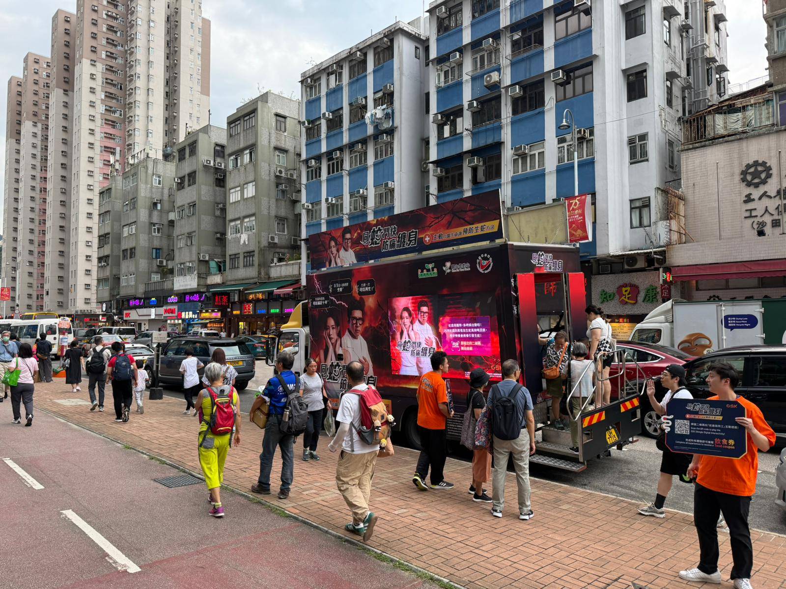 生蛇好可怕,如果想認識多一點或預防於未然,香港疼痛學會、香港糖尿聯會及病友組織:關心您的心–心臟病友互助組織就推出一架生蛇流動車宣揚健康訊息,車上有互動小遊戲、AR自拍體驗、趣味小測試,現場更有護士駐場為市民提供相關資訊教育,完成任務嘅人士更有紀念品。