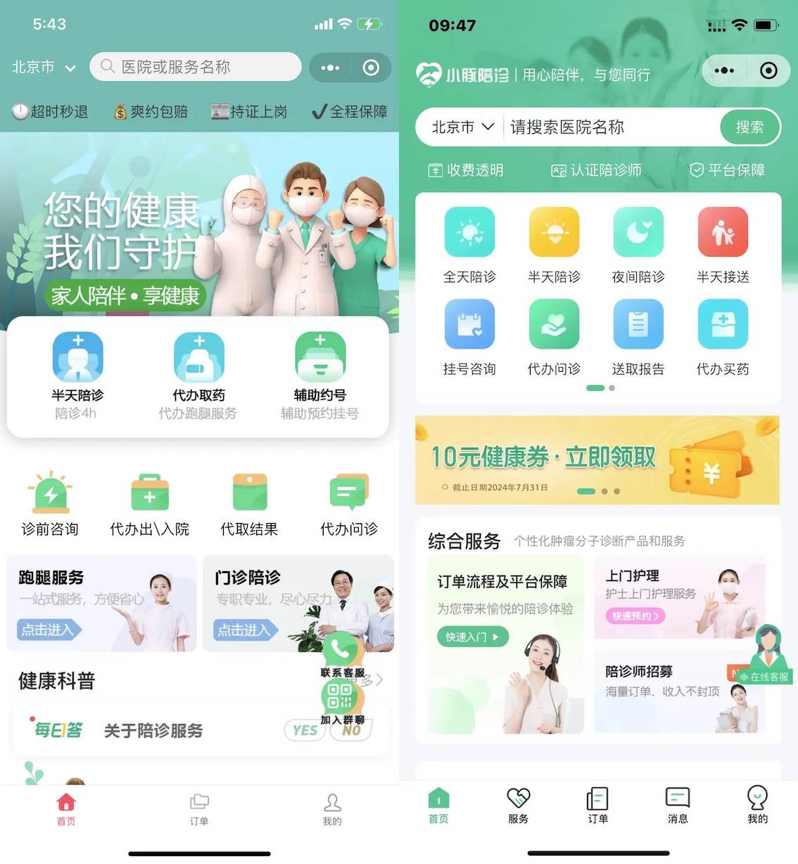 按國內研究機構「圖」2023 報告指出醫療機構亦提供陪診服務,如華西婦產兒童醫院或四川省人民醫院等亦有這類服務。這些陪診機構分工專業,有分協長長者、兒童、婦科、家庭醫學及各大專科的。而小紅書上也有一些以自僱形式提供服務的陪診員。