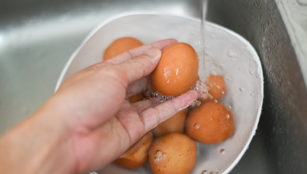 歐盟及美國其實禁止清洗雞蛋,原因是雞蛋表面有一層薄膜保護層,可防止細菌、也可防止濕氣進入蛋內,雞蛋一旦經清洗便會令這層薄膜流失。所以應該在烹調前才把雞蛋清洗,並立刻下鑊,不應洗後放置,以免產生細菌。