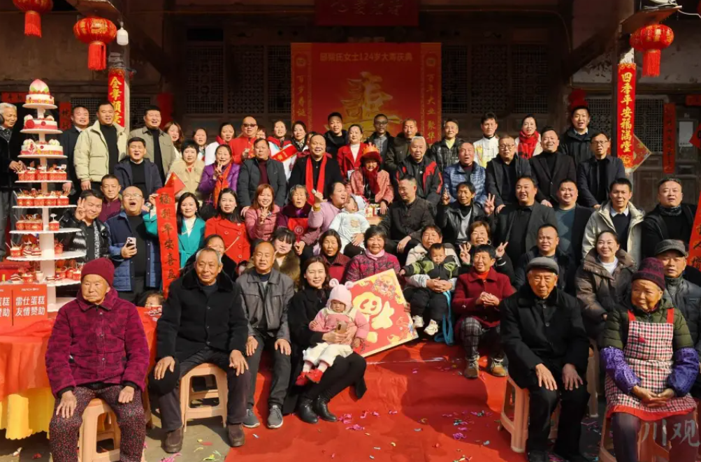 綜合內媒報道,來自四川省南充市南部縣花罐鎮柴氏祠村的邱柴氏老婦,近日迎來124歲生日,其家族已經六代同堂,她最近分享她的長壽秘訣。