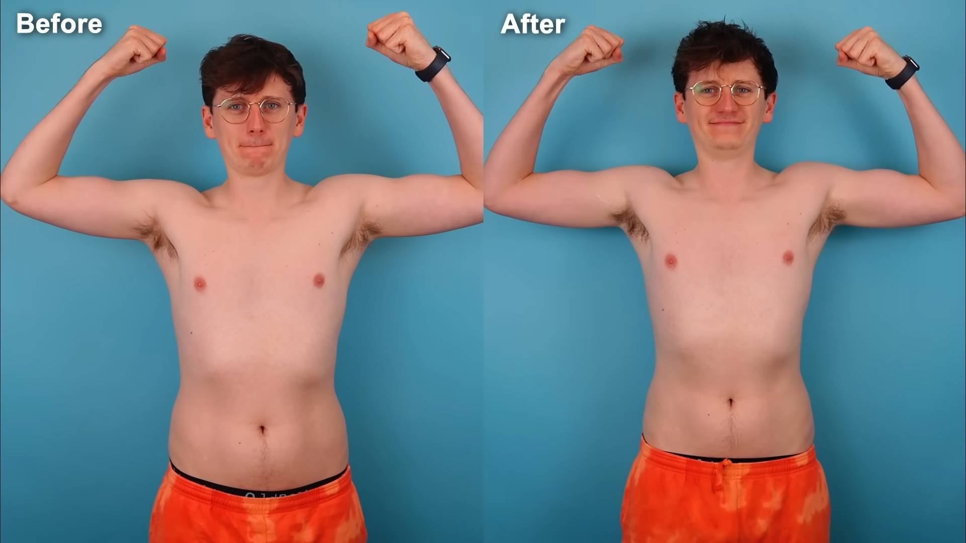 測量顯示,除了大腿周長增加0.5厘米,因增強了腿部肌肉,其他大部分部位,例如手臂和軀幹的周長都略有減少,「我沒有預料到能看出任何差異,所以這真的很令人驚訝」。