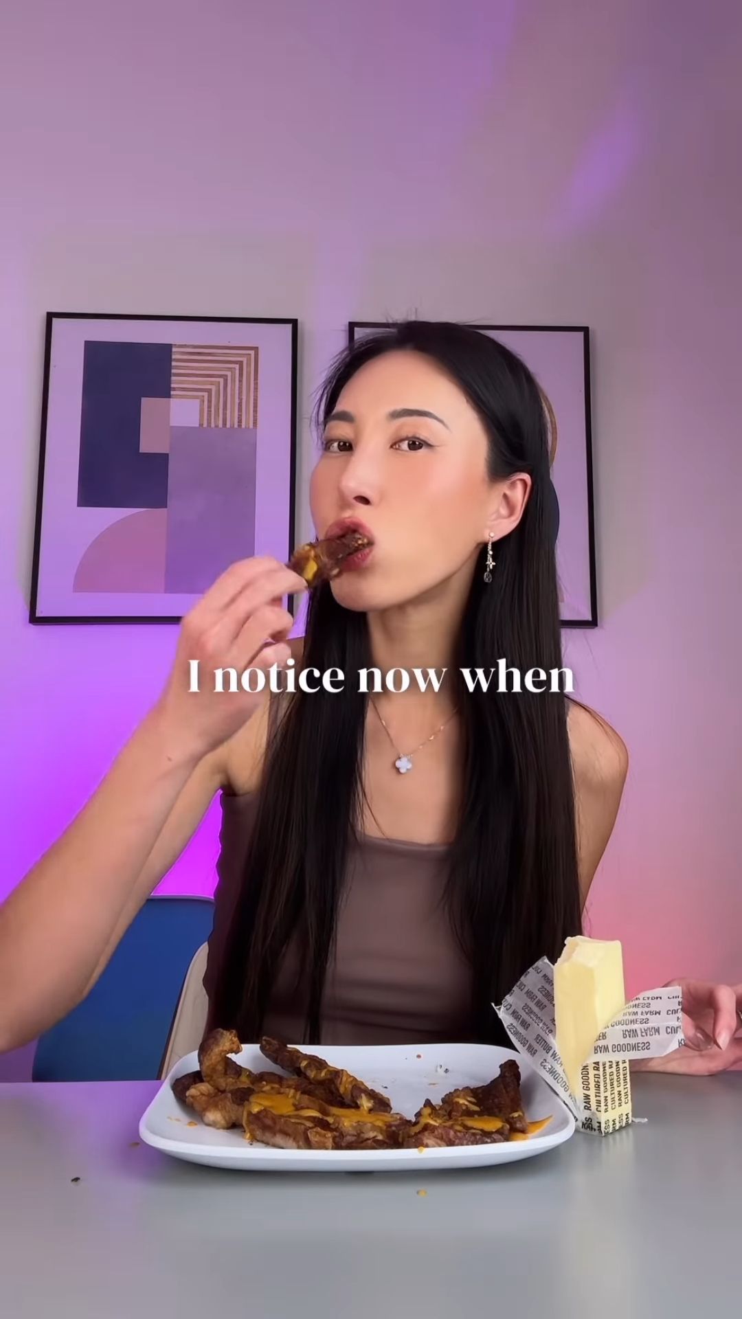 綜合外媒報道,Bella在Instagram上以帳號名稱「steakandbuttergal」分享影片,其帳號至今擁有逾42萬名粉絲。她表示這種飲食方式讓她有更規律的月經周期、擺脫了抑鬱症,甚至治好長期困擾她的皮膚問題,例如粉刺、濕疹和牛皮癬,「我並無因為精力不足而死去,也沒有破壞我的荷爾蒙。現在經期無痛,精力和情緒穩定得令人難以置信,因為我的身體現在燃燒脂肪作為燃料」。