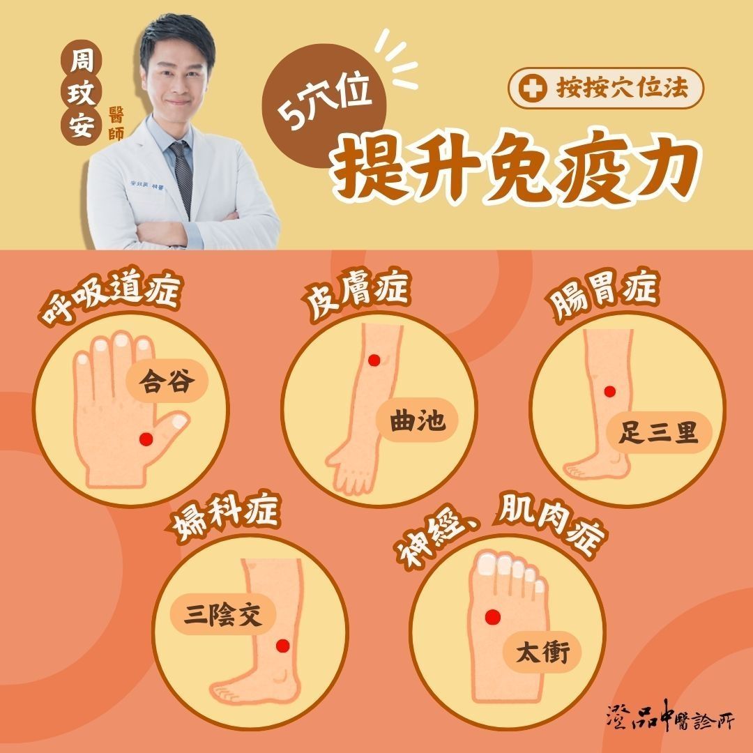 周玟安又分享提升免疫力的5大穴位: