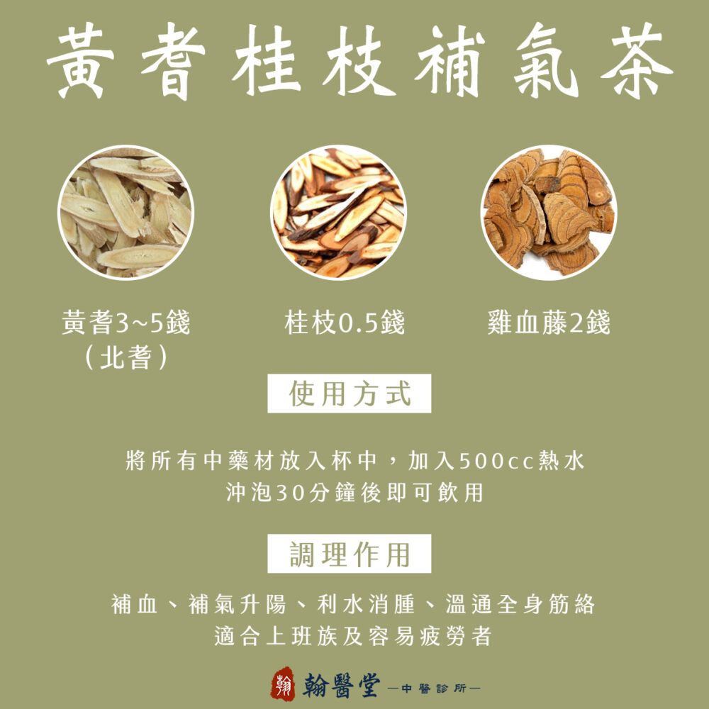 補血、補氣升陽、利水消腫、溫通全身筋絡,適合上班族及容易疲勞者。
