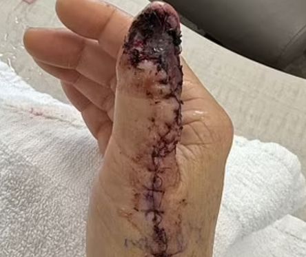 今年1月17日,Michelle接受長達4小時的手術,她的右拇指指甲被切除,整形外科醫生從她的拇指底部取了一塊皮膚,移植到指甲缺失後暴露的骨頭和肌腱上。
