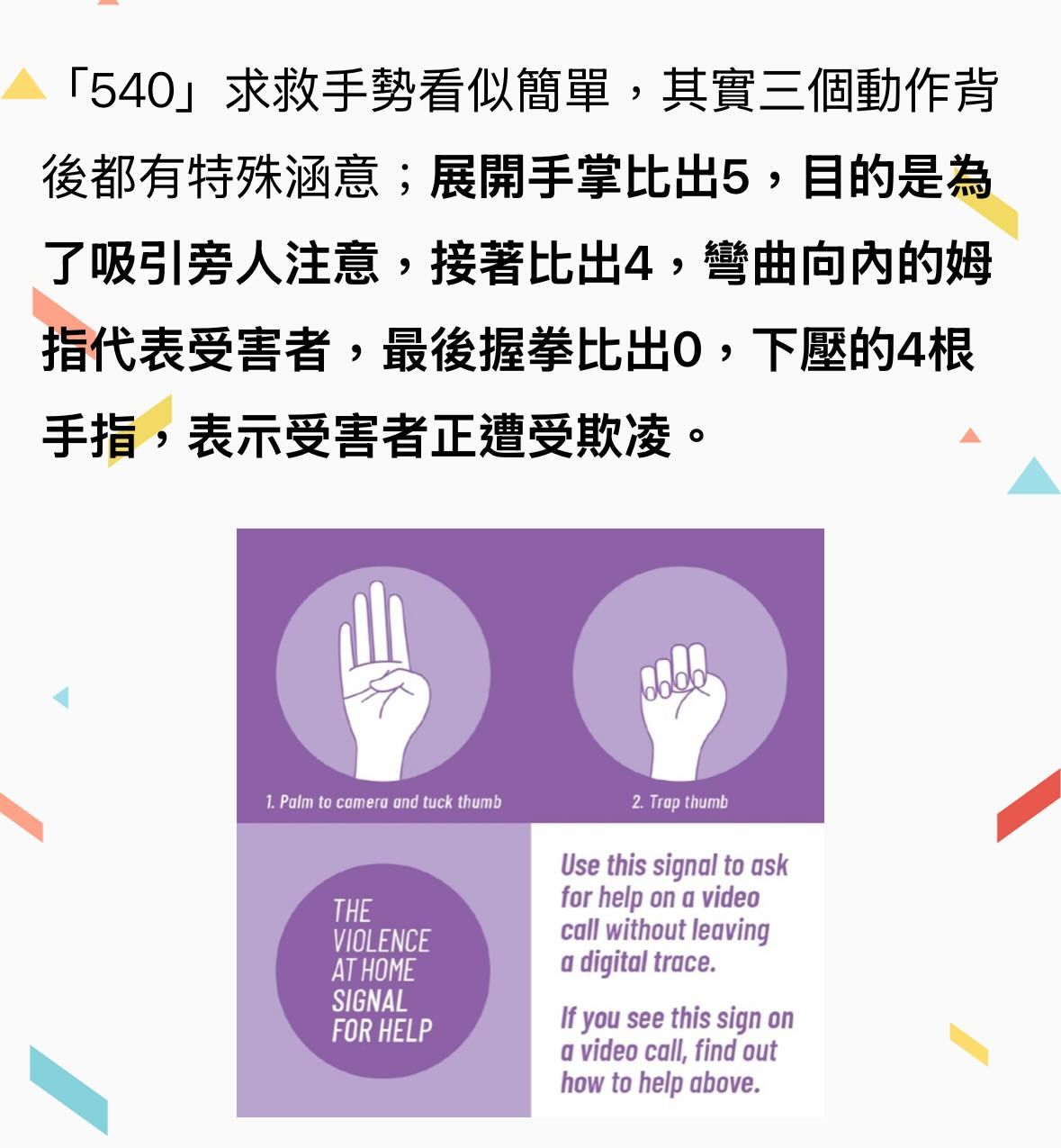 帖文曝光後,不少網民都感謝事主和其他店員的機警和幫忙,並提醒不管男女都要記下來,「說真的,要有更多人看懂『540』才行,不管男女」、「求救訊號要大大推廣,讓受害者跟大眾都清楚,以幫助那些受困已久的受害者,感謝你的機靈」、「天呀!你們好棒、好機警。之前看到都一直想說如果遇到的一天要怎麼處理,還好你們當機立斷!真的超棒的」、「好像也有看過手心中央黑點,也是代表人身安全受到威脅的意思」、「感謝分享,第一次知道有這個手勢,真的很重要」、「你們超棒的,拯救了一個女孩子,謝謝你們,真的要學起來,『540』很重要」。