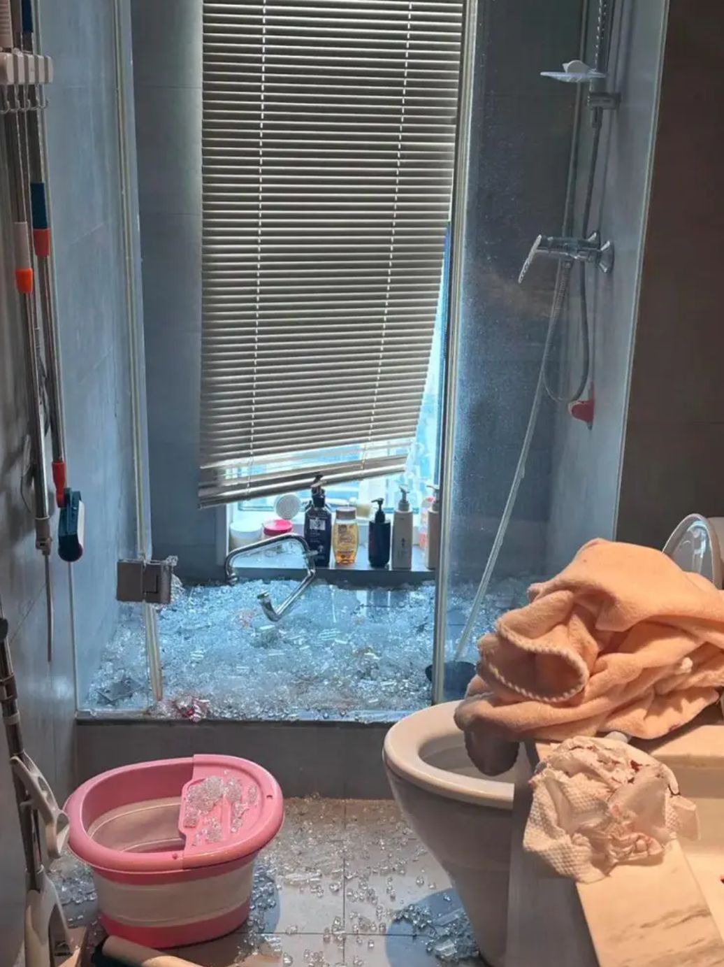 【浴室/廁所/玻璃門/浴屏】綜合內媒報道,浙江杭州一名20多歲的00後女子,去年11月在杭州一所酒店式公寓租住房子,原本相安無事。未料上周六(15日)晚上7時許洗澡後,她準備用右手推開乾濕分離的鋼化玻璃門時,浴屏卻突然爆裂,導致大量玻璃碎向其身上噴濺。