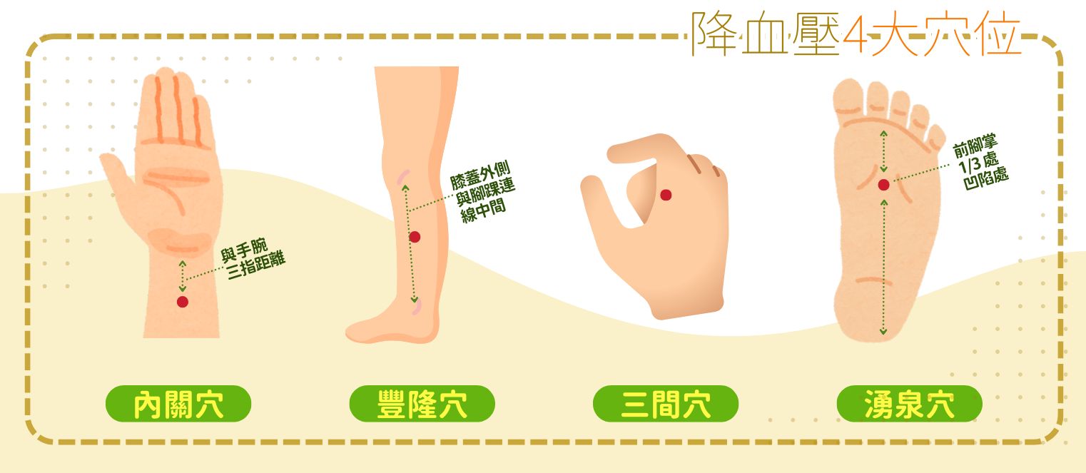 如果中年人不幸患了高血壓,除了跟隨醫生指示吃降血壓藥、改善飲食及運動外,台灣中醫師廖述賢就教大家4個可以有助改善高血壓的穴位。廖醫師推介以下4個有保健作用的穴位。