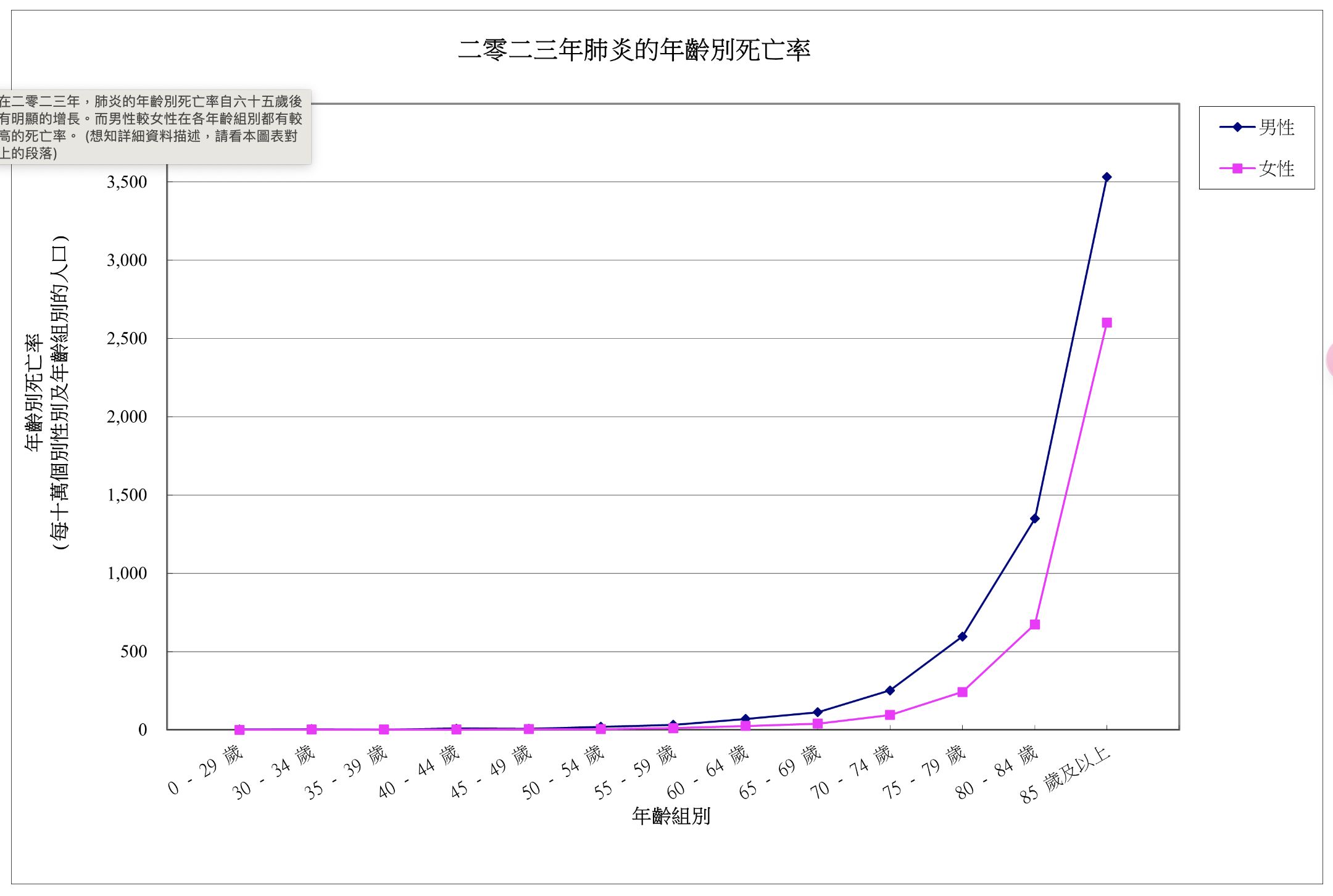 有台灣胸肺科醫生指肺炎感染後易引發上述併發症,根據衛生防護中心數據,65歲以上患上肺炎的人士死亡急升。以下整理肺炎高危人士、成因、病徵及死亡率,供大家參考。