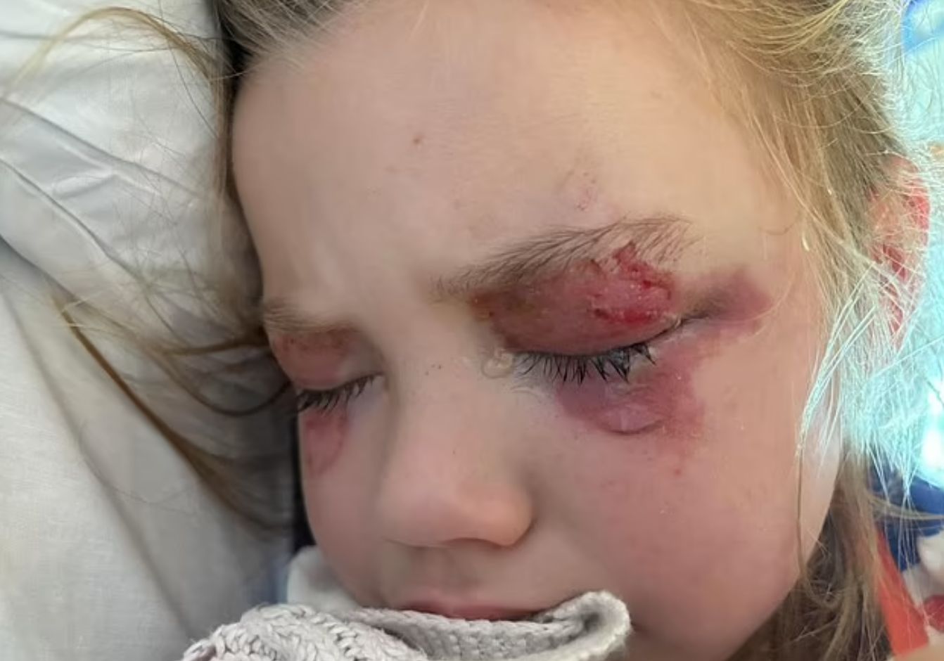 Jodi立即為Luca沖洗眼睛,試圖沖掉化學物質。然而,Luca的情況並未好轉,Jodi隨後將她送院。Luca在數天後出現眼睛紅腫,布滿水泡和結痂。她接受長達16天的住院治療,期間進行3次手術。