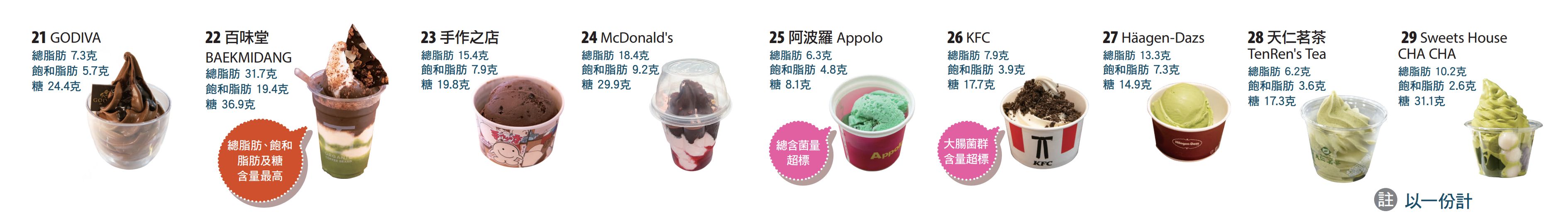 【消委會/雪糕/冰凍甜點/甜品/脂肪/高糖/滿分/無菌/防腐劑】消委會測試市面上29款預先包裝及非預先包裝的雪糕及冰凍甜點,預先包裝樣本的售價為一件$9至$99,非預先包裝樣本的售價為一杯$10至$82。結果發現1款檢出的總含菌量和另外1款檢出的大腸菌群含量,超過香港法例的上限。