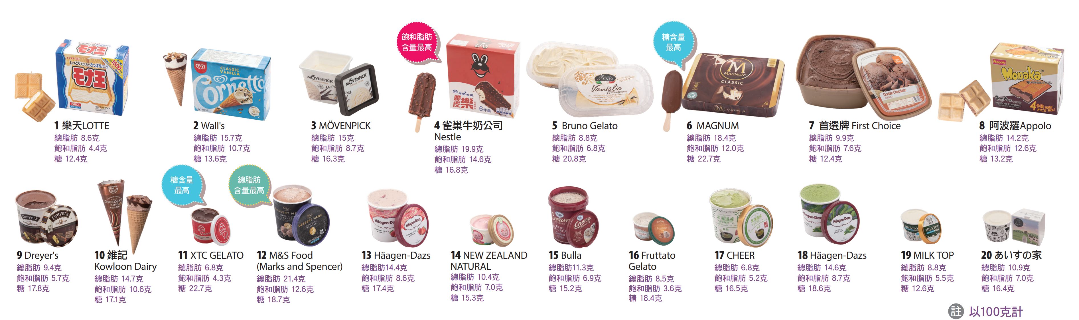 消委會雪糕 | 總脂肪含量相差約4倍