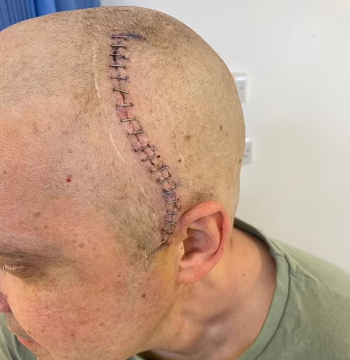 Stuart被緊急送入手術室,盡可能切除癌細胞。妻子Lauren憶述:「我們見了一名外科醫生,他說要切除3個淋巴結。我們以為這不是一個大手術,但不幸的是,當他們打開身體後,發現癌症已經擴散到Stuart的胸鎖乳突肌(位於喉嚨兩側)。他醒來發現半邊頸被切除,才知道這個情況。之後他下定決心要與病魔抗爭,手術很成功,我們以為一切都結束了。」