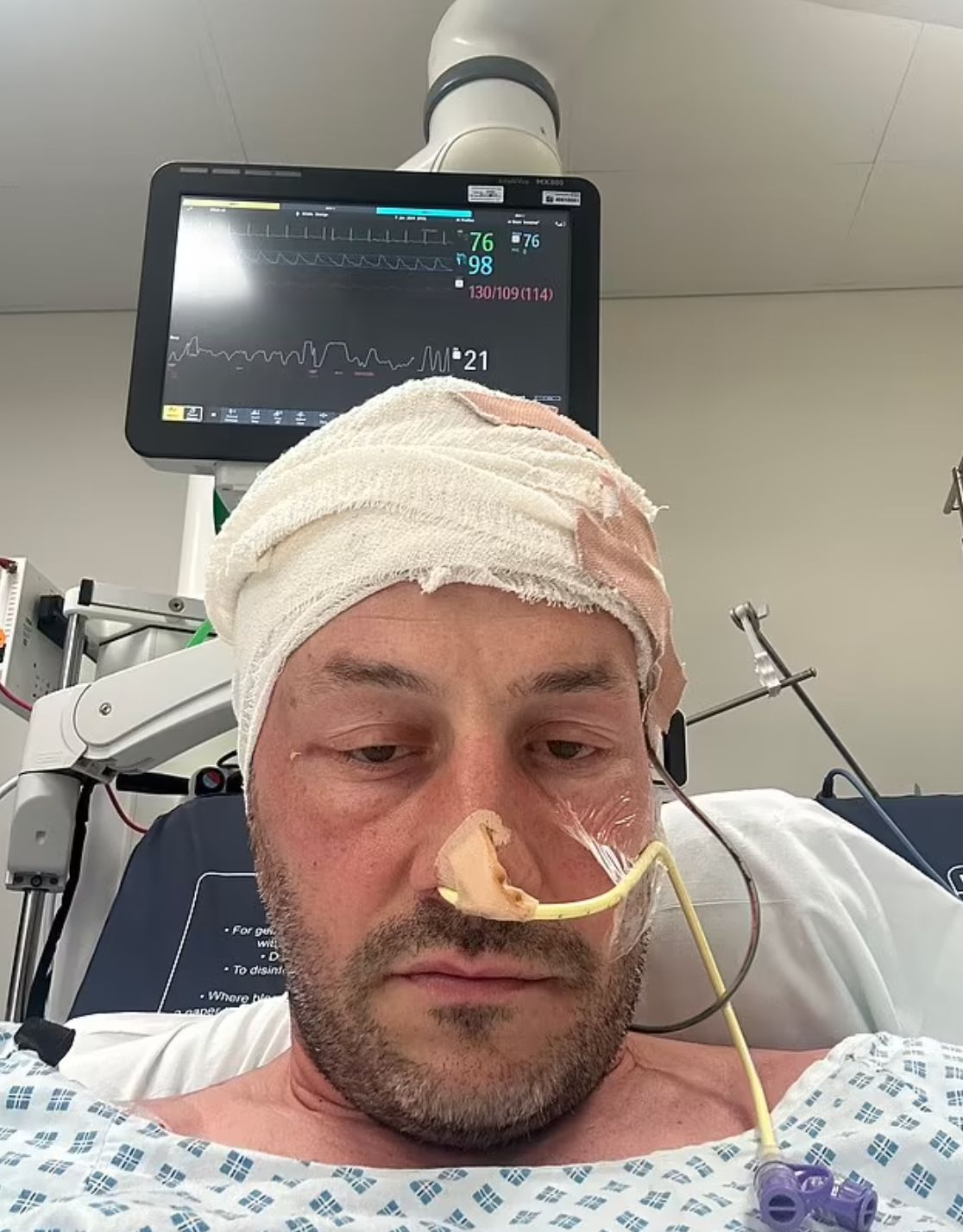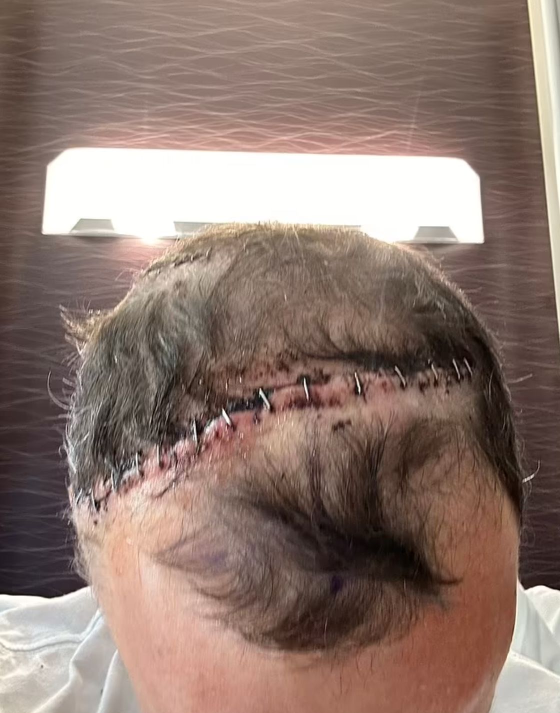 醫生告訴他,腫瘤可能已在他的腦中存在20年,症狀出現是因為大腦「最終空間不足」。在手術前,醫生處方類固醇減少腦部炎症,但這些藥物讓他出現躁狂和偏執的症狀,需在醫院精神科留院4天。