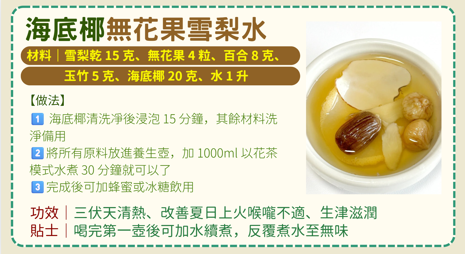 💡功效|三伏天清熱、改善夏日上火喉嚨不適、生津滋潤